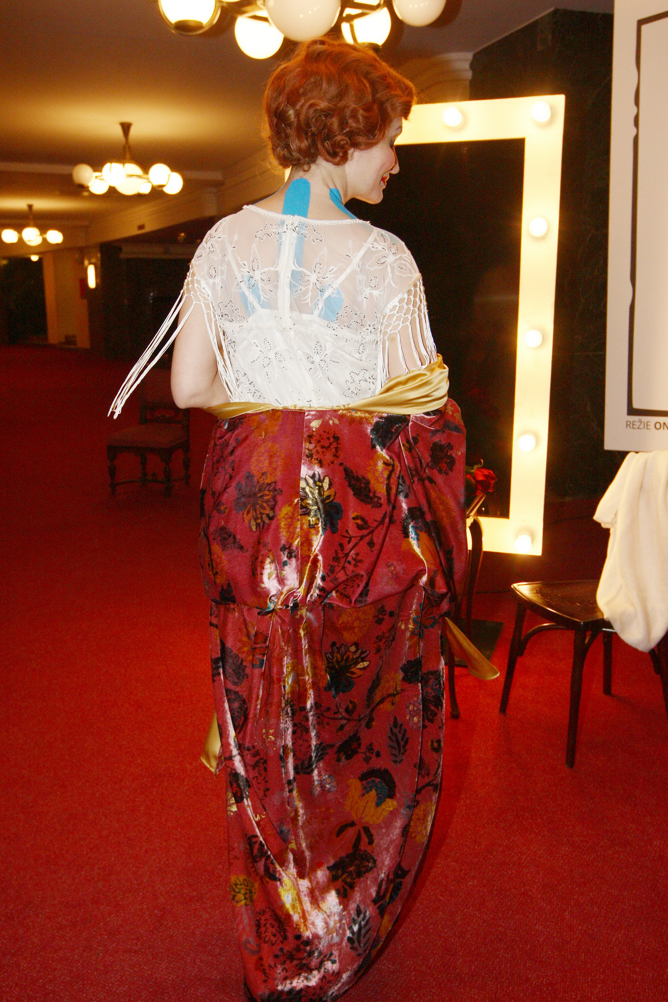 s Romanem Zachem, který hraje v muzikálu její osudovou lásku Nicka Arnsteina, zapózovala i s pohublým Ladislavem Frejem neboli Florencem Ziegfeldem, kterému to mimochodem také hodně slušelo a s Kristýnou Fuitovou-Novákovou, jež hraje její garderobiérku. V povedených kostýmech se představila také Jana Krausová a Lenka Termerová.
