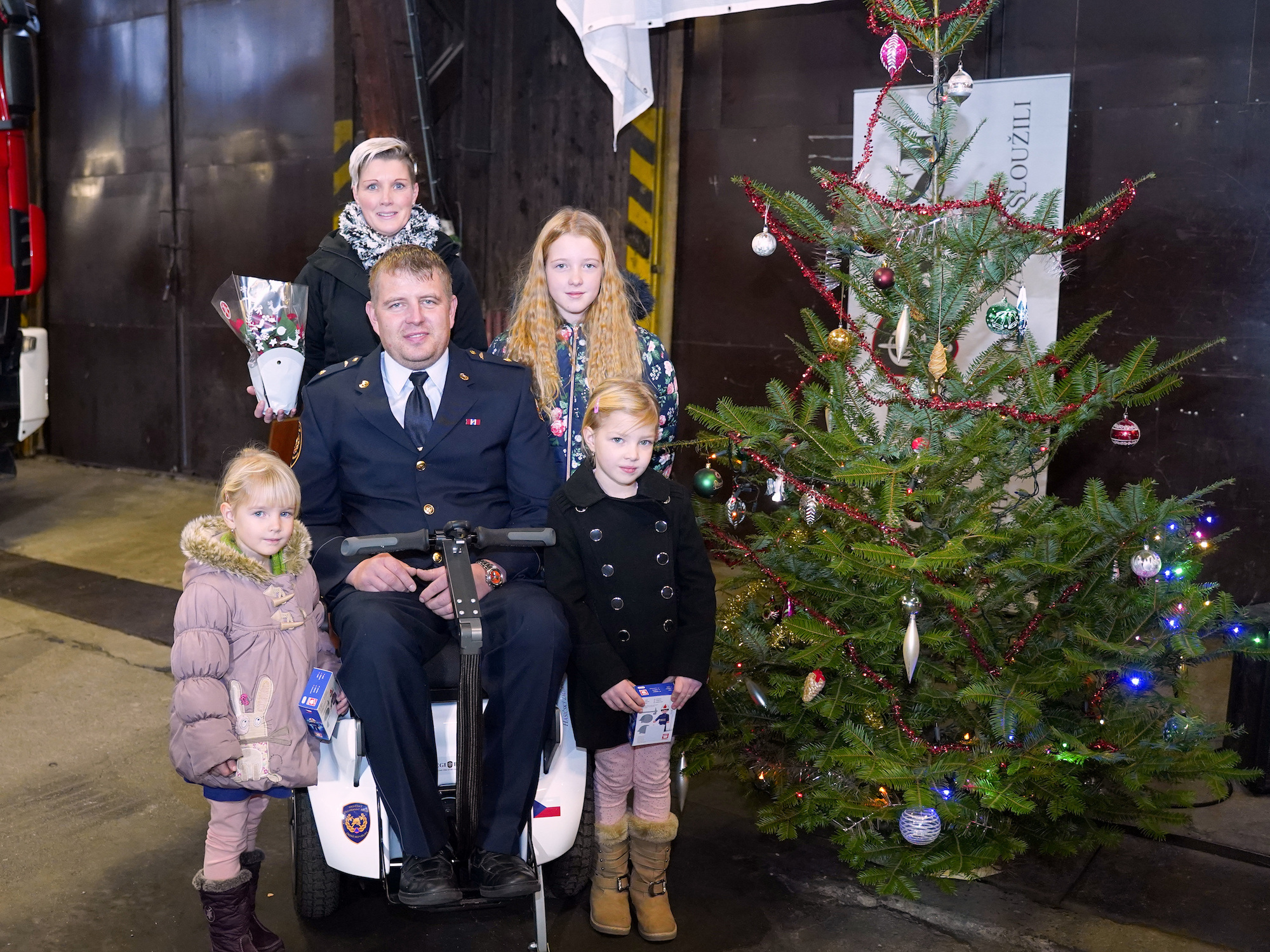 Předání proběhlo v historické budově hasičské záchranné stanice Holešovice, a proto nechyběli ani členové tohoto hasičského záchranného sboru, kteří vytvořili pro svého zraněného kolegu příjemnou vánoční atmosféru.