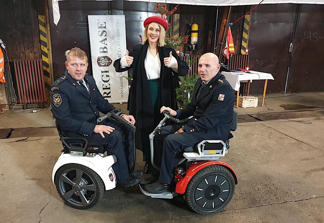 Vozík měl velitel čety Martin Šabata možnost vyzkoušet dříve, protože podobný dostal již v únoru letošního roku jeho hasičský kolega kpt. Libor Bohdanecký. A jak nám Martin prozradil, o to více se těšil. Tento vozík totiž jezdí podobně jako známá Segway jen na dvou kolech a umožňuje tak snadnou jízdu na ulici i v náročnějším terénu; zvládne trávníky, lesní a polní cesty, strmá stoupání a dokonce jako jediný umí jezdit po písečných plážích. Je neskutečně pohyblivý, rychlý a jednoduše ovladatelný, což aktivním lidem, které omezuje zranění, neskutečně pomáhá.