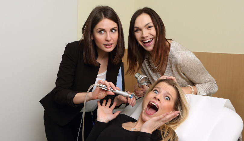„Absolvují ošetření a čištění pleti, její regeneraci a můžeme odstranit na našem přistojí i případné chloupky. Vše je bezbolestné a bezproblémové,“ vysvětlil na úvod Ali. „Je to potřebné. V divadle, když hrajeme, se samozřejmě líčíme, což pleti zřejmě tolik neprospívá, takže jsme nabídku kliniky rády využily,“ jednohlasně informovaly dámy. Ještě před samotným zákrokem samy vyšetřily pana doktora Amiriho, poslechly si jeho srdce a sdělily mu diagnózu, že je úplně zdráv. Pak si pohrály i s prsními implantáty, které je zaujaly, ovšem spíše jako hračka a touhu nechat si je „nainstalovat“ zamítly s tím, že zatím zůstanou jejich prsa přírodní. Výjimku tvořila jen Míša Gemrotová, které by se k loni již zavedeným zvětšovačům už další zřejmě nevešly.