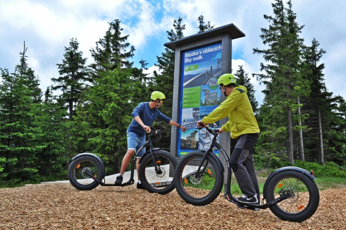 Pokud cestujete jako rodinka s dítětem nebo s dětmi, podívejte se na webu, jestli se vám nevyplatí Family pas. Ten totiž zahrnuje vstup na Stezku v oblacích, jízdu lanovkou tam a zpět, celodenní vstup do Mamutíkova vodního parku, celodenní vstup do Lesního zážitkového parku a celodenní vstup do Pískového světa. Pokud tolik aktivit nestihnete, můžete využít další akci. Při koupi vstupenky do Mamutíkova vodního parku, získáte 50% slevu na vstup do Pískového světa. Tato akce trvá až do konce října. Ať už s sebou povezete děti, tchýni, kamarády nebo kolegy, určitě můžete vyrazit na výšlap do krásné přírody nebo na vyjížďku na kole či koloběžkách. Všechno potřebné si zapůjčíte na místě.