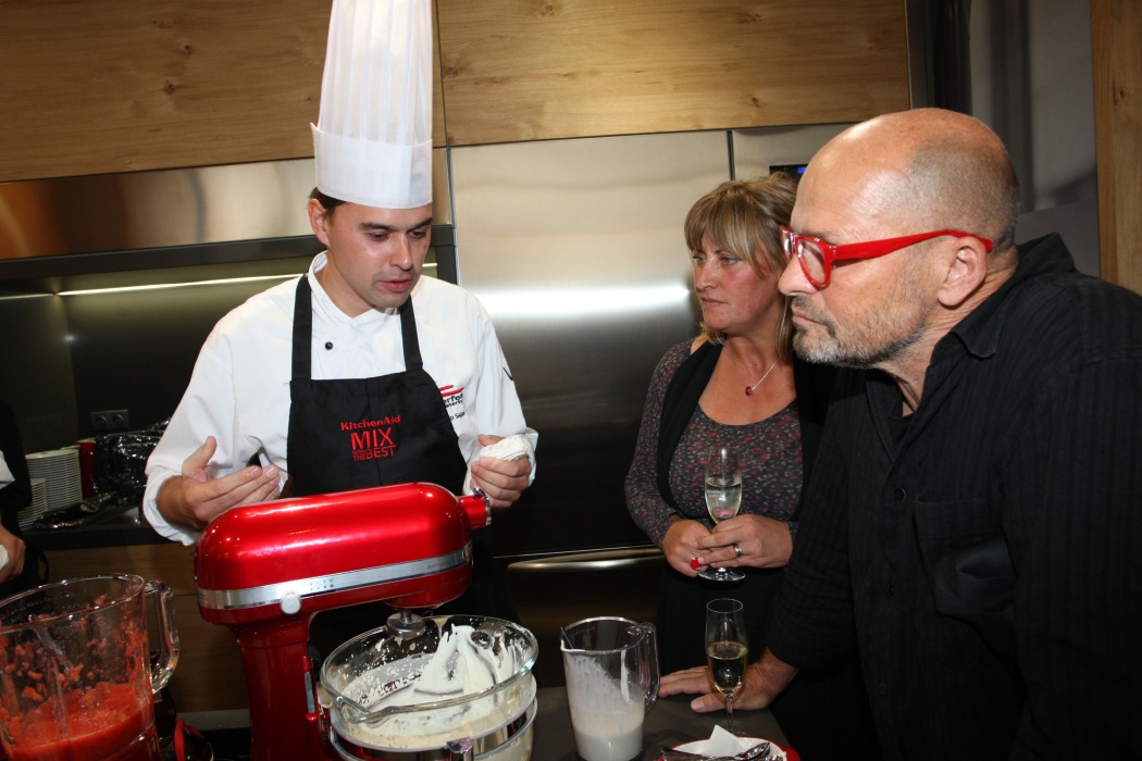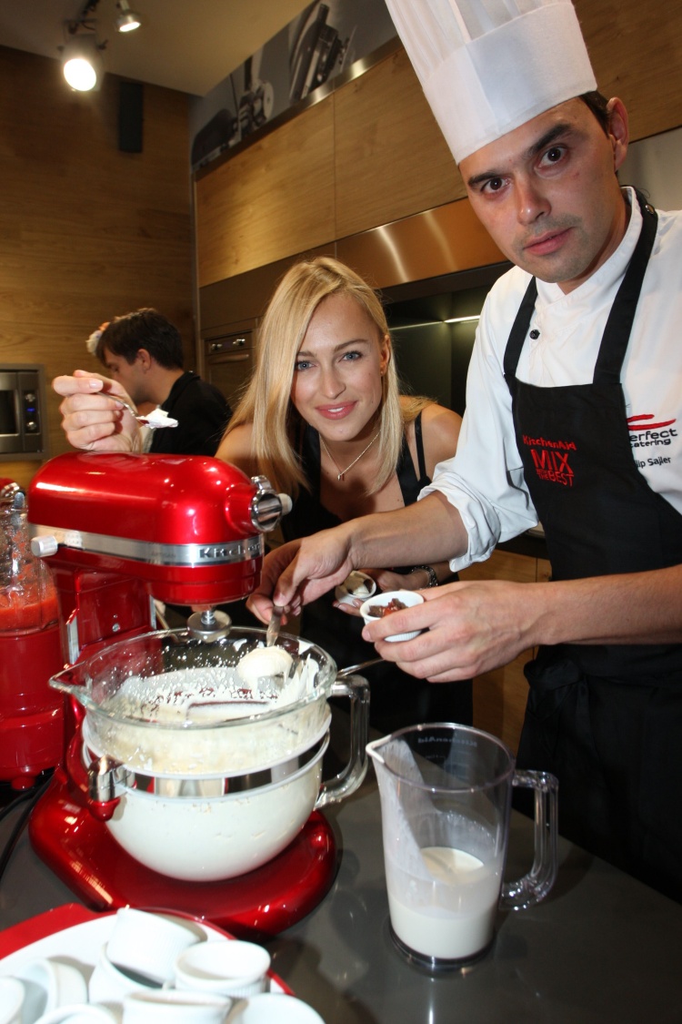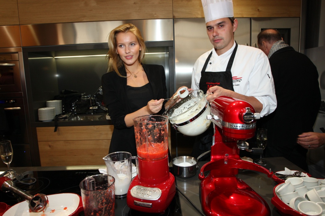Každý si mohl vybrat přístroj a práci s ním si vyzkoušet. Prodejna se v mžiku proměnila v kuchyni, ve které šlehaly, míchaly, mixovaly, rozmělňovaly a drtily připravené potraviny a zpracovávaly různá těsta právě naše VIP. Zdeněk Pohlreich mezi nimi chodil se vztyčenou hlavou, nakukoval jim pod ruce a rozdával rady, jak pracovat lépe. Tak, jak je mu to vlastní. A co si o této značce myslí? „KitchenAid znám už docela dlouho. Když si něco kupuju do své kuchyně, vybírám především podle kvality a spolehlivosti přístroje. To, že je to hezký, je jen bonus navíc,“ hodnotil spotřebiče jeden z našich nejznámějších kuchařů. Jeho rady si vzal k srdci Jiří Mádl a sice velice opatrně nakrájel čerstvě upečený moučník. Se svou přítelkyní Evou Josefíkovou potřebují vybavit kuchyni, a tak přišel obhlédnout trh. A to by nebyl Jirka, aby nevtipkoval: „Práci v kuchyni miluju…můžu se na ni dívat celý hodiny.“ Vyzkoušet spotřebiče přišla také Mahulena Bočanová: „S Marínkou často pečeme koláče, buchty nebo bábovky. Marínka mi pomáhá, ale pro jistotu ji kontroluji, aby si neublížila. Tohle je super, stačí zmáčknout tlačítko a jede to samo. To bych se o Marínku nebála a klidně bych jí nechala větší prostor,“pochvalovala si bezpečnost práce se spotřebiči Mahulena Bočanová. Spousta lidí si své jídlo fotí, umisťuje na sociální sítě a chlubí se svými výtvory. K dokonalému výtvoru je ale potřeba mít kvalitní přístroje. „Spotřebiče KitchenAid, jejichž kompletní kolekci naleznete v našem prvním Evropském Concept Storu, jsou funkční a bytelné, ale rovněž jsou skvělým doplňkem, jehož nadčasový design se nezměnil od začátku století,“ chválil spotřebiče Pavel Staněk, prezident Potten & Pannen Staněk.