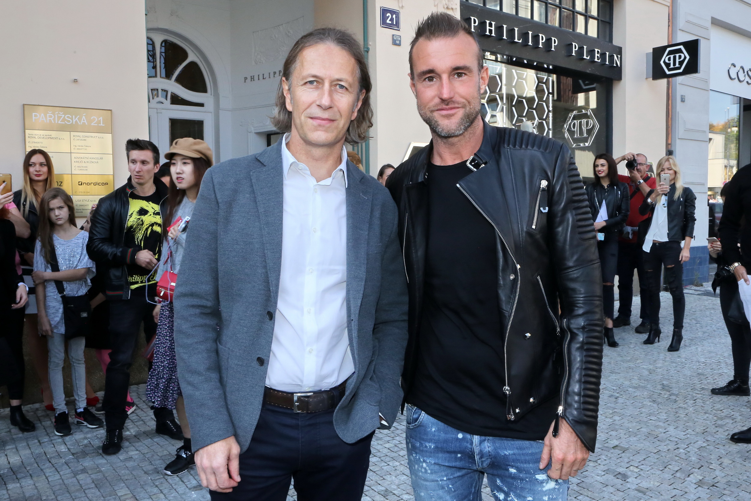 Přivítali jej nejen majitelé butiku a media, ale i české celebrity. Chybět nemohl ani náš nejznámější moderátor Leoš Mareš, který si obligátně vše zaznamenal na svůj Instagram. Přítomní obdivovali nejen luxusní modely, ale i pohodový a přátelský přístup známého návrháře, který se s každým rád ochotně vyfotil a rozdával úsměvy na všechny strany. Herečky Denisu Nesvačilovou, Barboru Mottlovou a Darinu Ničovou zaujaly nejvíce kožené bundy s originálním zdobením. „Já jsem taková straka, takže blýskavý motivy a kamínky mám moc ráda. Navíc je pan návrhář velký fešák a gentleman, vůbec se nedivím, že se mu ve světě tak daří. U nás v Pařížský jeho značka určitě sklidí velký úspěch“, usmívala se Mottlová, když jí sám Plein pomohl zkusit jeden z jeho modelů.
