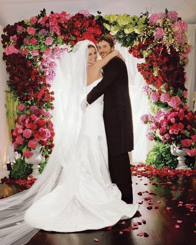 Svatba přímo na nový rok se odehrávala na ostrově Bora Bora ve francouzské Polynésii. Svatby se účastnilo 25 přátel. Deset družiček dostalo od nevěsty producentky Tracey Edmondson na památku briliantové náušnice a svědek Eddieho hodinky za 3 miliony korun.