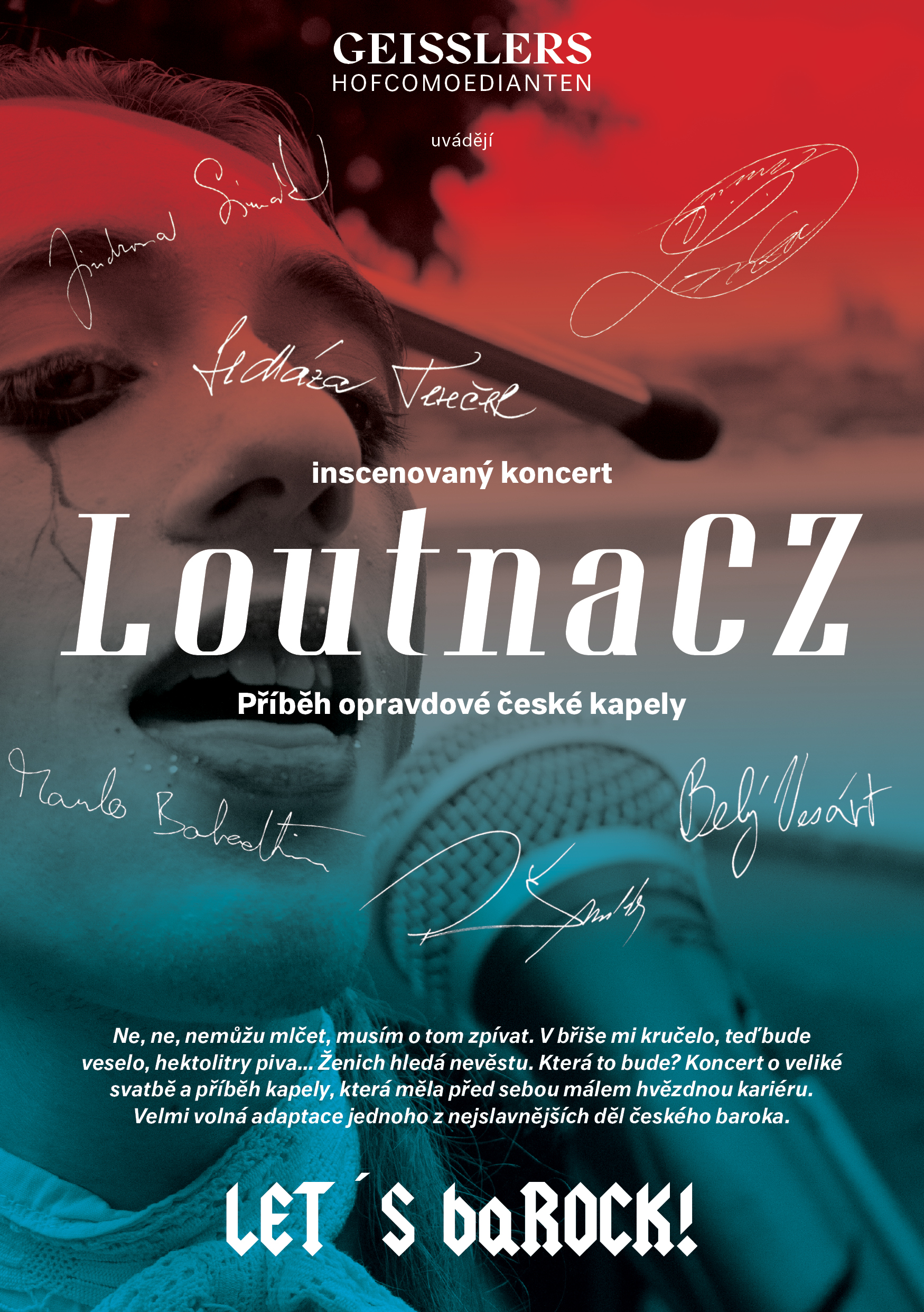 „LoutnaCZ je pokus skloubit politickou satiru s hravostí tradiční geissleří poetiky. Je až s podivem, jakou paralelu nabídla za tímto účelem Michnova Loutna česká. Vzali jsme si z ní námět a v podstatě osnovu (svatba duše a jednotlivé fáze svatby). Písně se jmenují stejně jako ty Michnovy a občas se v nich objevují i hudební a textové fragmenty původního díla. Ale vše je zasazeno do aktuálního společenského kontextu. Loutna CZ je také splněný sen GH o založení kapely. The Geisslers vznikli pod vedením Davida Hlaváče skoro jako kouzlem a z baroka se transformovali do baROCKU…“ dodává dramaturgyně Helena Kebrtová ke vzniku a koncepci inscenace.