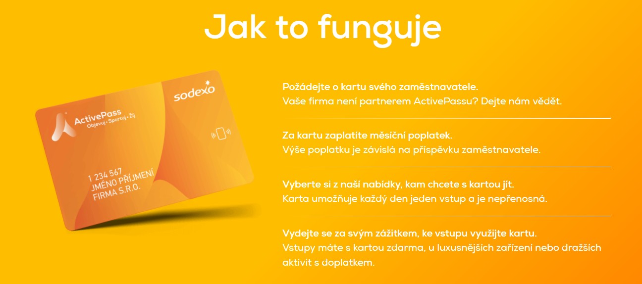 ActivePass funguje jako permanentka na volnočasové aktivity a svému majiteli umožňuje každý den jeden vstup do jakékoli smluvní provozovny. Většinu zařízení lze s kartou navštěvovat bez dalších poplatků, pouze u některých prémiových aktivit může být účtován jednorázový příplatek. Aktuálně je v nabídce ActivePassu přes 5500 aktivit u více než 1000 partnerů a každý měsíc počet provozoven roste.
