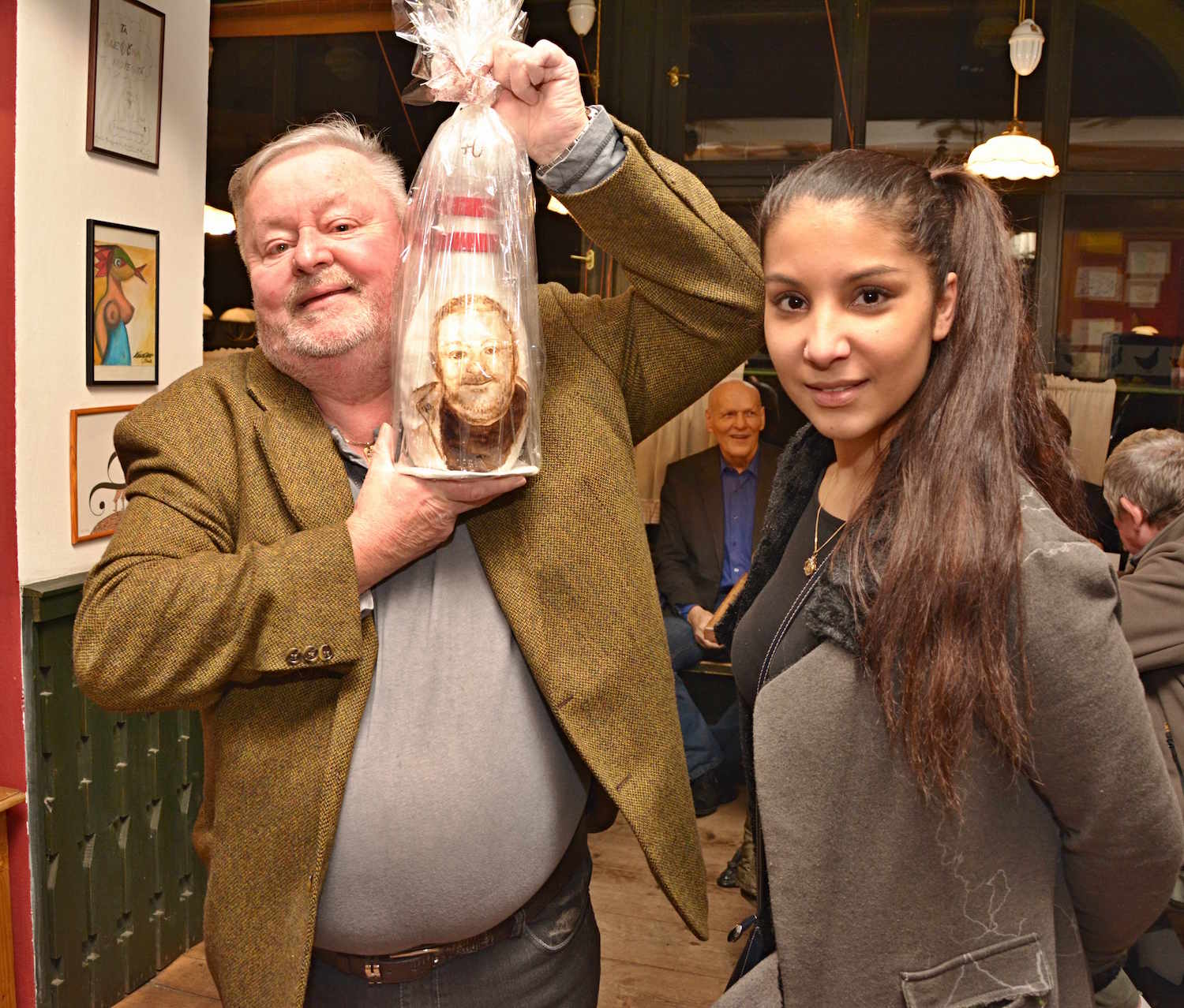 Nejméně půl hodiny přijímal Jan Kuželka gratulace. Všichni mu přáli hlavně zdraví, štěstí lásku a ještě mnoho krásných rolí. Předali mu nespočet dárků, kterým však vévodily dva naprosto originální: prvním byl perníkový dort s kuželkami a druhým byl velikánský perník ve tvaru kuželky s portrétem herce. „Já nevím co říct. To je tak krásný. Všichni jsou úžasný, že přišli. Udělali mi obrovskou radost. Já to vážně nečekal… byl to pro mě šok,” přiznal dojatý Jan Kuželka.