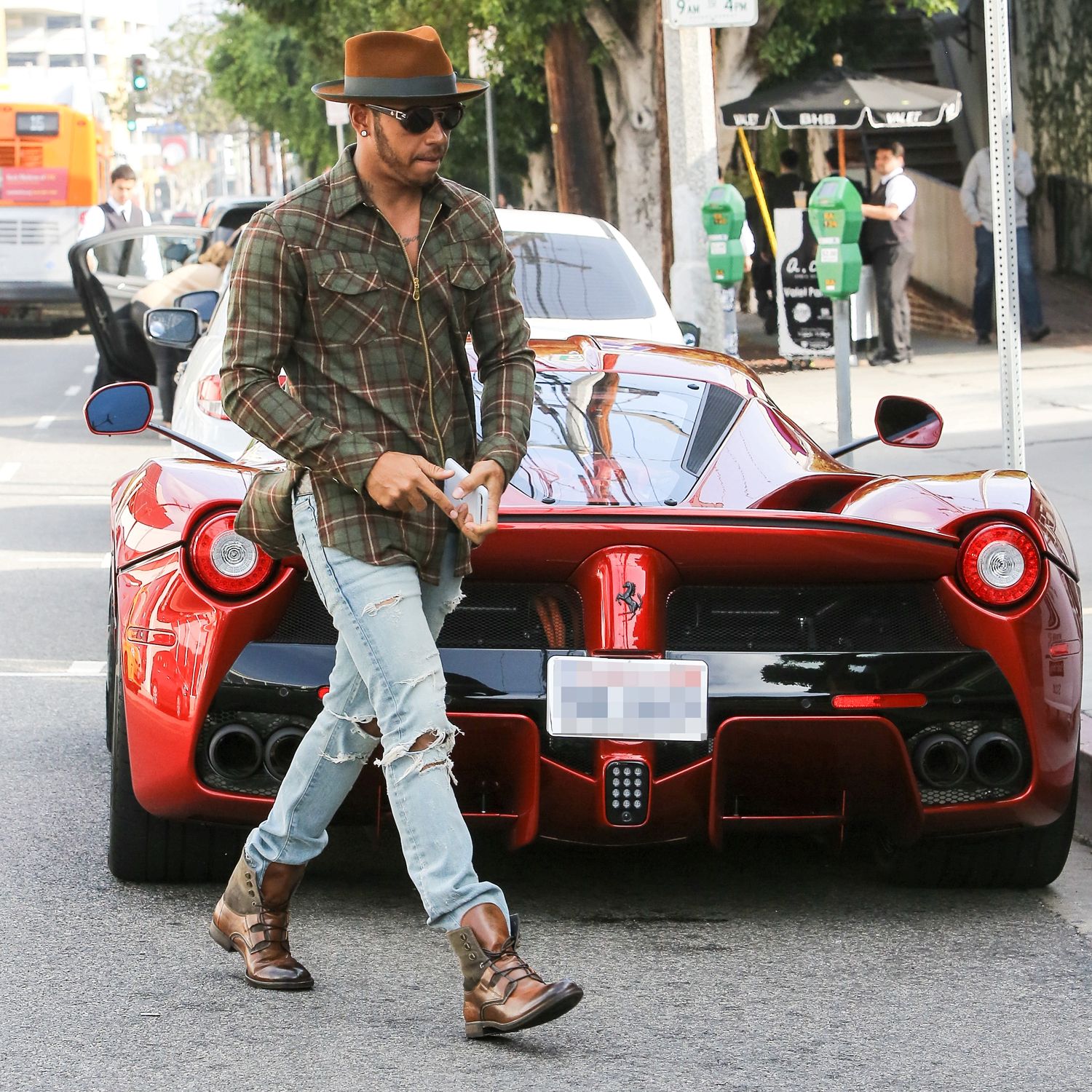 Aby se hned ukázal s rudým bourákem, zajel si na oběd do Beverly Hills, kde samozřejmě neunikl pozornoti Paparazzi fotografů. Otázkou je, co na to řeknou šéfové jeho stáje. Tam asi nebude moc radost z toho, jakou značku jejich kůň prezentuje. O tom, že je Ferrari opravdu v kurzu svědčí i fakt, že se se stejným typem nedávno fotil i Justin Bieber. Co je pro ně 1,5 milionu dolarů, že?