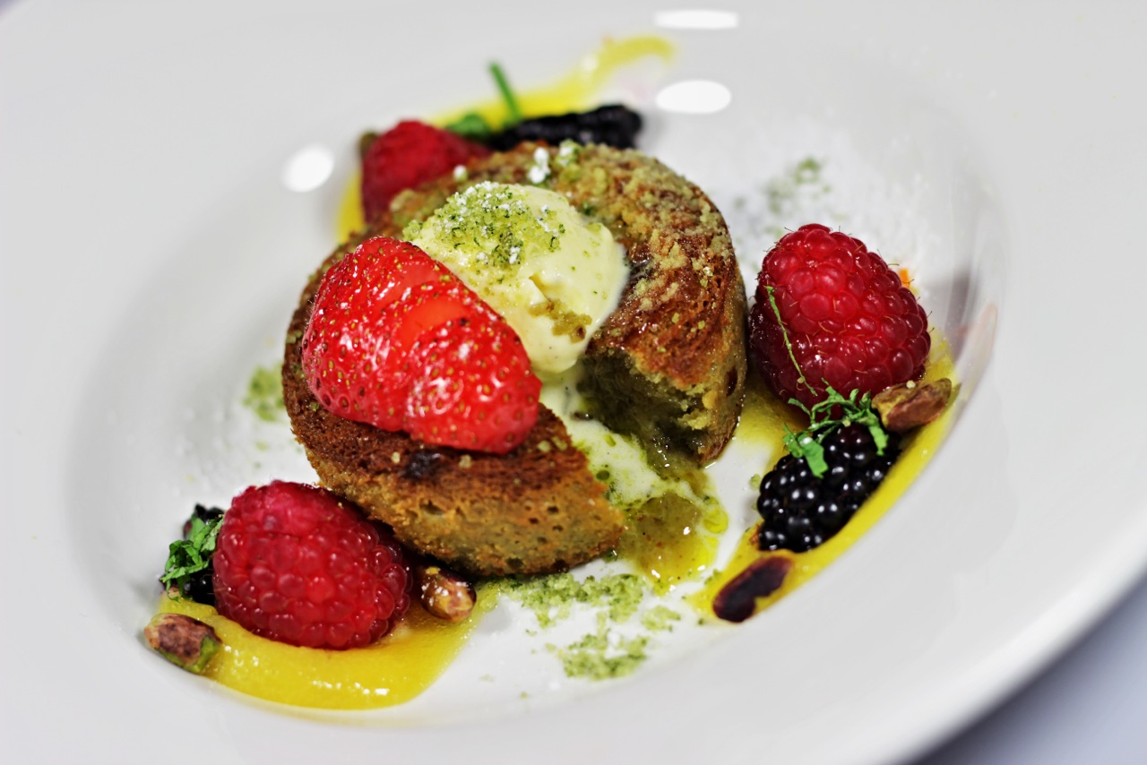 - Mango „panna-cotta“ s passion fruit espumou a gelem z medových fíků