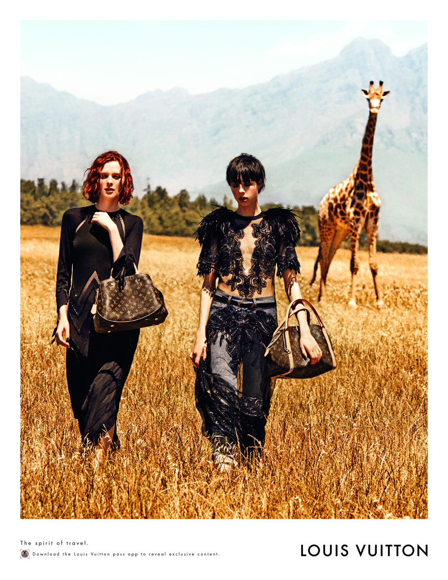 Na své poslední výpravě, kterou Carine Roitfeld popsala jako ‚cestu do extrému elegance‘, provází dvě neohrožené cestovatelky tři ikonické kabelky Louis Vuitton. Speedy, Keepall a Neverfull. Poprvé se veřejnosti představují dva nové modely z plátna Monogram. Elegantní a velmi dámská kabelka je jako dělaná pro Karen Elson, zatímco ta ležérnější ladí s bohémským šarmem Edie Campbell. Obě modelky si nesou své kabelky se stejnou uvolněností, s níž oblékají sofistikovaně zdobnou kolekci pro sezonu jaro/léto 2014 v jihoafrické buši – duch svobody podtrhuje modernost této nové kampaně. Neptejte se, kudy máte jít – buďte sami sebou. „Do Jižní Afriky jsme odjeli s téměř úplně volnou rukou, co se týče uměleckého záměru. Modelky a lidé ze štábu byli také skvělí. Karen Elson a Edie Campbell představují dvě mladé ženy, které jsou na cestě. Cesta je velmi osobní, ale ne nutně příběh. Neměli jsme plánky ani představy, jak by to mělo vypadat. Všechno vznikalo ze spontánní situace. Výsledek je proto velmi přirozený a má kouzlo“