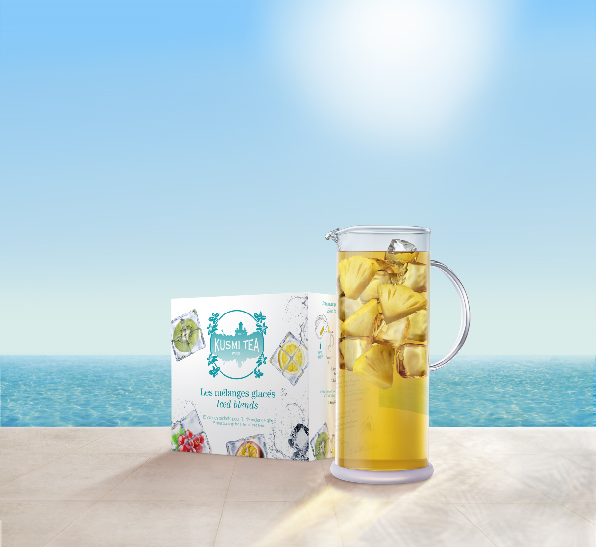 Správná chvíle na šálek výtečného čaje Kusmi Tea je kdykoliv – i v létě.  Ledový čaj připravený z dárkové sady Iced Teas, obsahující 15 velkých samostatně balených mušelínových sáčků s rozmanitými čaji, které jsou vhodné na přípravu domácího ice tea, skvěle chutná, osvěží a zažene žízeň.