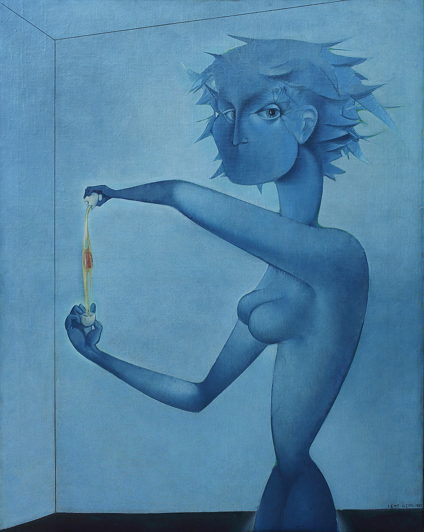 Akce I (Vajíčko). Tak se jmenuje unikátní obraz Mikuláše Medka s modrou ženskou postavou z let 1955–56. Už 6. června 2019 od 16 hodin ho na své 10. aukci v zahradě vily v Praze-Bubenči nabídne aukční dům Arthouse Hejtmánek. Dílo s vyvolávací cenou 8 milionů korun je prvním ze dvou jedinečných Medkových obrazů, na nichž malíř zachytil ženu v modré barvě – tajemnou krásku bez úst, s magickým okem, graciézním tělem a plochými špičatými vlasy, rozbíjející vajíčko. Druhý z „modrých“ obrazů, dlouho nezvěstné dílo s názvem Akce II (Vlna) z roku 1956, byl nedávno vydražen ve Spojených státech v přepočtu za 24,4 milionu korun, a stal se tak nejdražším dílem české poválečné moderny.