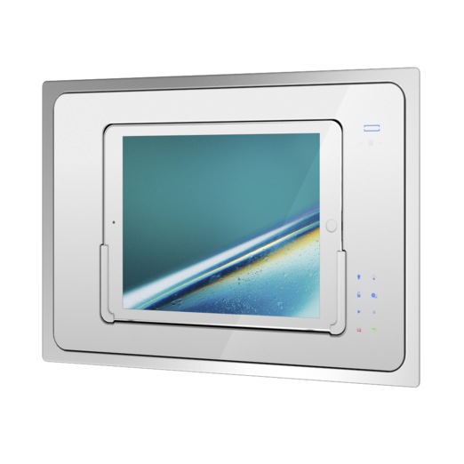 Díky stanici iRoom iBezel se ovšem můžete rozhodnout, jaký ovladatelný parametr přiřadíte pod jednotlivé funkční klávesy. Samostatně programovatelná klávesnice je integrována ve skleněném rámu, a koncovému uživateli tak poskytuje přímý přístup k nejčastěji používaným funkcím. iRoom iBezel lze integrovat s řídícími moduly nejznámějších výrobců, nebo jej lze použít jako samostatné řešení pro ovládání pomocí přímých IP příkazů, které jsou přiřazeny pod jednotlivá tlačítka v rámu.