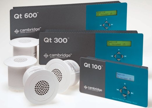 „Díky zařízení pro maskování zvuku je možné v open office kancelářích zlepšit prostředí, především akustickou pohodu, navíc bez rušivých zásahů do vizuální podoby interiéru a s přijatelnými náklady,“ konstatuje Andrej Hronec a pokračuje: „Metodu zvukového odstínění používali již staří Řekové, když své zahrady či interiéry „chránili“ před hlukem z ulice šumícími fontánami. V dnešní době slouží k těmto účelům malé reproduktory – tzv. emitory, vysílající tichý uniformní šum o různých frekvencích, který je upravený do pásma lidské řeči a optimalizovaný tak, aby překrýval probíhající komunikaci. Rozhovor ve vzdálenosti zhruba 3,5 m sice slyšíte, ale nevnímáte jeho obsah, takže vás nevyrušuje.“ Emitory systému Cambridge Sound Management jsou menší než kompaktní disk a lze je snadno zapustit i do složitých stropních konstrukcí, kam se instalují nejčastěji.