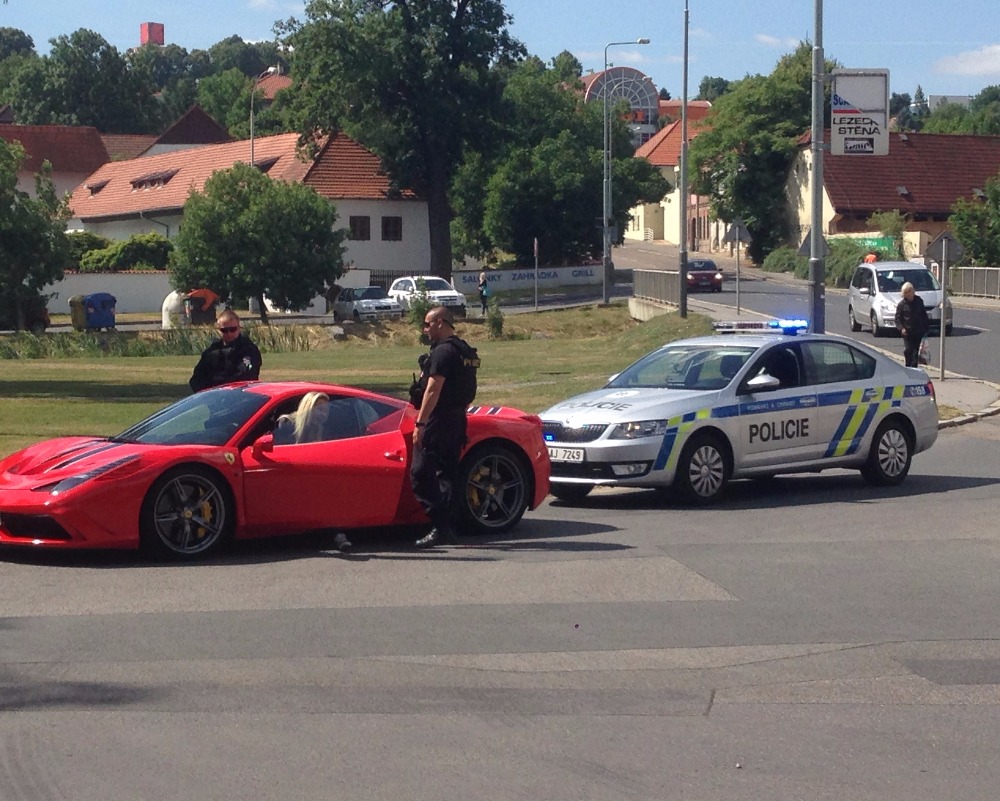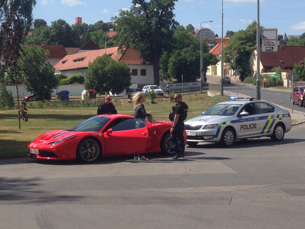 Krásné ženy a drahá auta k sobě patří a vzájemně si sluší. Jenomže když máte slabost pro rychlou jízdu, musíte počítat, že vás policista s plácačkou dříve či později zastaví. To se také tento týden stalo modelce Tereze Jelínkové, když vyrazila na projížďku ve Ferrari. Daleko se nedostala.