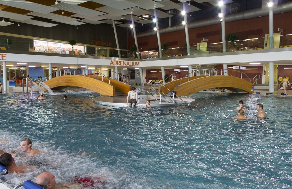 Najdete zde atraktivní tobogány, plavecké a zábavní bazény a vyhřívaný bazén pod širým nebem. Vodními atrakcemi zábavního bazénu jsou divoká řeka, houpací bazének, masážní lavice, dnové perličky, vodní chrliče, vodní číšea dva whirlpooly. Venkovní nerezový bazén s nejteplejší vodou v našem areálu. Po setmění, zejména v zimním období, máte zaručeno koupání pod hvězdami. Masážní lavice a dnové perličky umožňují dokonalý požitek z koupání. Bazének je určen nejmenším dětem. Pobavit se můžou pod vodním hřibem, s prskající žábou nebo vodním chrličem. Zábavnou jízdu si užijí na nové skluzavce „SLON“. Plavecký 25m bazén pro vášnivé plavce, oddechové plavání, ale také pro výuku začínajících plavců. K dispozici je 8 plaveckých drah. Co vy na to, vyrazili byste?