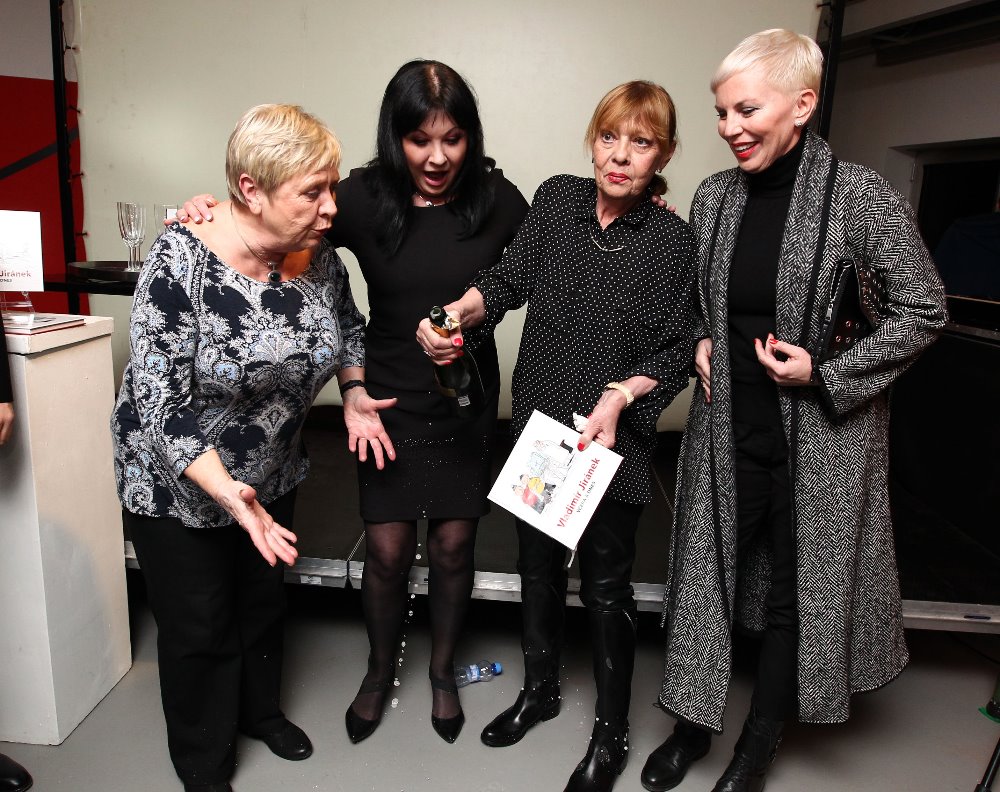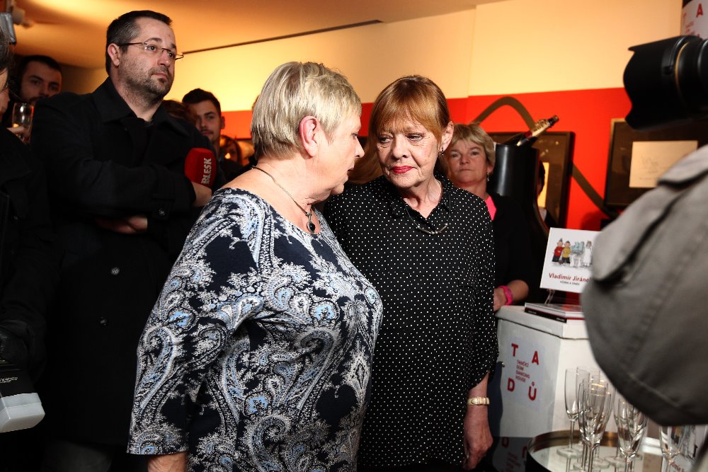I proto prý velice ráda přijala nabídku zahájit vernisáž retrospektivní výstavy zmíněného významného ilustrátora s názvem Včera a dnes v Galerii Tančící dům. „Je to pro mne čest. Pana Jiránka jsem poznala jako malá holka, protože bydlel nedaleko nás, pak jsem ho vídala na vernisážích a samozřejmě se bavila jeho vtipy. Já sama, to se přiznávám, anekdoty vyprávět neumím, a když se o nějakou pokusím, občas se zamotám. Jeho humor je ale nezapomenutelný a i když některé z jeho děl a dílek si tady na výstavě prohlédnu a třeba je i znám, bavím se jimi stejně jako napoprvé. Je to paráda,“ nechala se slyšet Patrasová. „Dneska, bohužel, moc věcí k smíchu není. Já samozřejmě třeba Boba a Bobka také znám, ale animované filmy mě tolik zase nerozdovádí. To spíše kreslené vtipy a těch je na téhle výstavě více, než dost. Takže proč se nepoveselit, když se tu nabízí jedna z nemnoha příležitostí,“ uvedla herečka Jaroslava Obermaierová. Zmíněné dvě dámy se spolu s dalšími dvěma milovnicemi děl Vladimíra Jiránka, Janou Šulcovou a Kateřinou Kornovou, staly po slavnostním zahájení a kreslířské show žáka Vladimíra Jiránka, malíře Alexe, i kmotrami nové knížky. Ta nese stejný název, jako celá výstava, tedy Včera a dnes a nabízí výběr nejlepších Jiránkových kreslených vtipů, které byly přeloženy do sedmi světových jazyků.