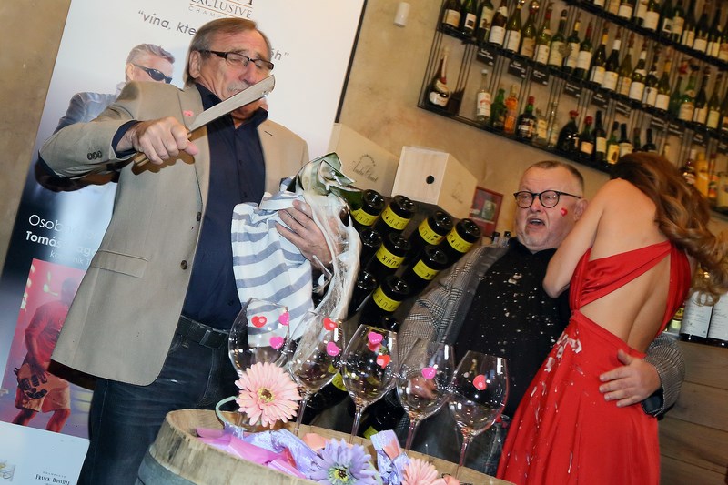S Pavlem Zedníčkem, francouzským vinařem, Doctorem P.P. a Magorem se pak pustili do valentýnské výzdoby. „Kdopak se ujme sabráže?“, zeptala se přítomných pánů poté, co zdobení dokončila včetně laškovného zdobení přítomných pánů samolepícími srdíčky. Při pohledu na sekáček na maso a láhev šampaňského to mezi přítomnými zašumělo, napětí ovšem stouplo na bod varu až v okamžiku, kdy se Pavlu Zedníčkovi podařilo láhev urazit. „No vida, Valentýna neslavím, šampaňské nepiju, a takhle skvěle jsem si to užil,“ smál se při odchodu z party, z níž si odnášel láhev Champagne pro manželku Hanku.