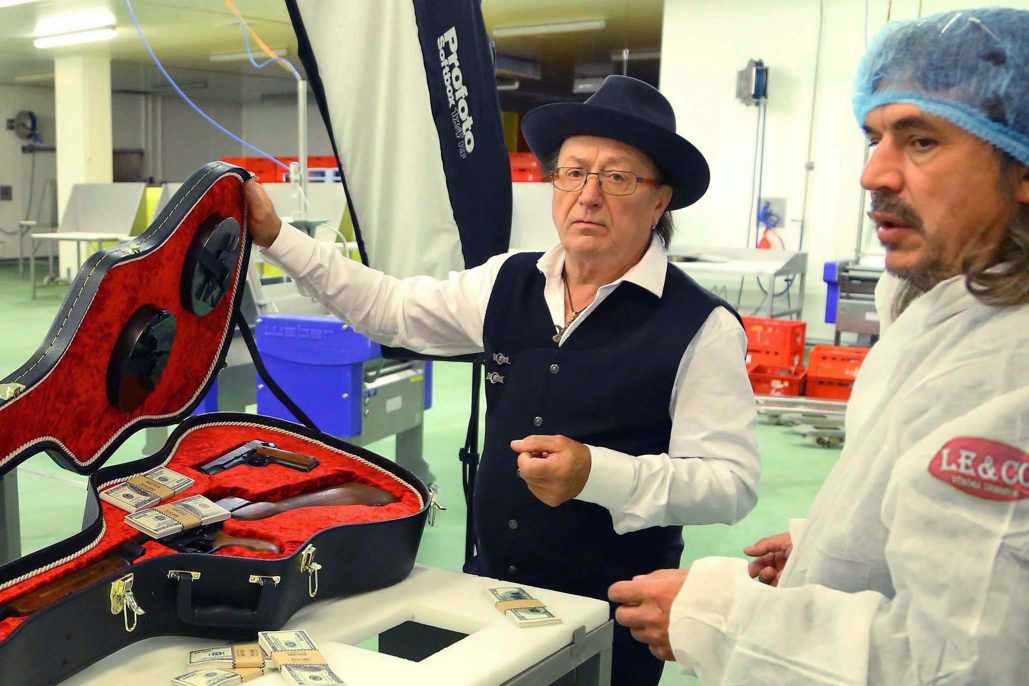 Rozčtvrcená těla, zbraně, hromady bankovek, PETR JANDA (74) jako mafiánský boss… leader Olympicu ovšem v gangsterském outfitu netočil akční thriller, ale pózoval pro tradiční prestižní kalendář firmy Leco, výrobce uzenin prvotřídní kvality.
