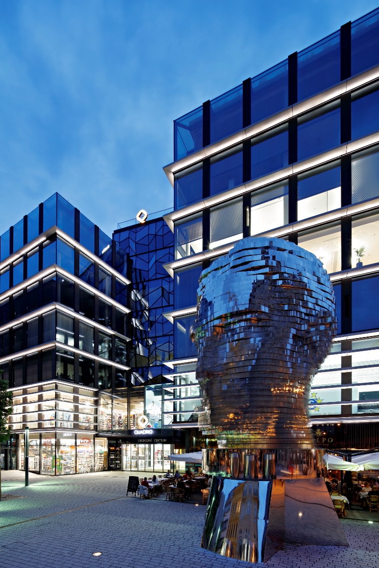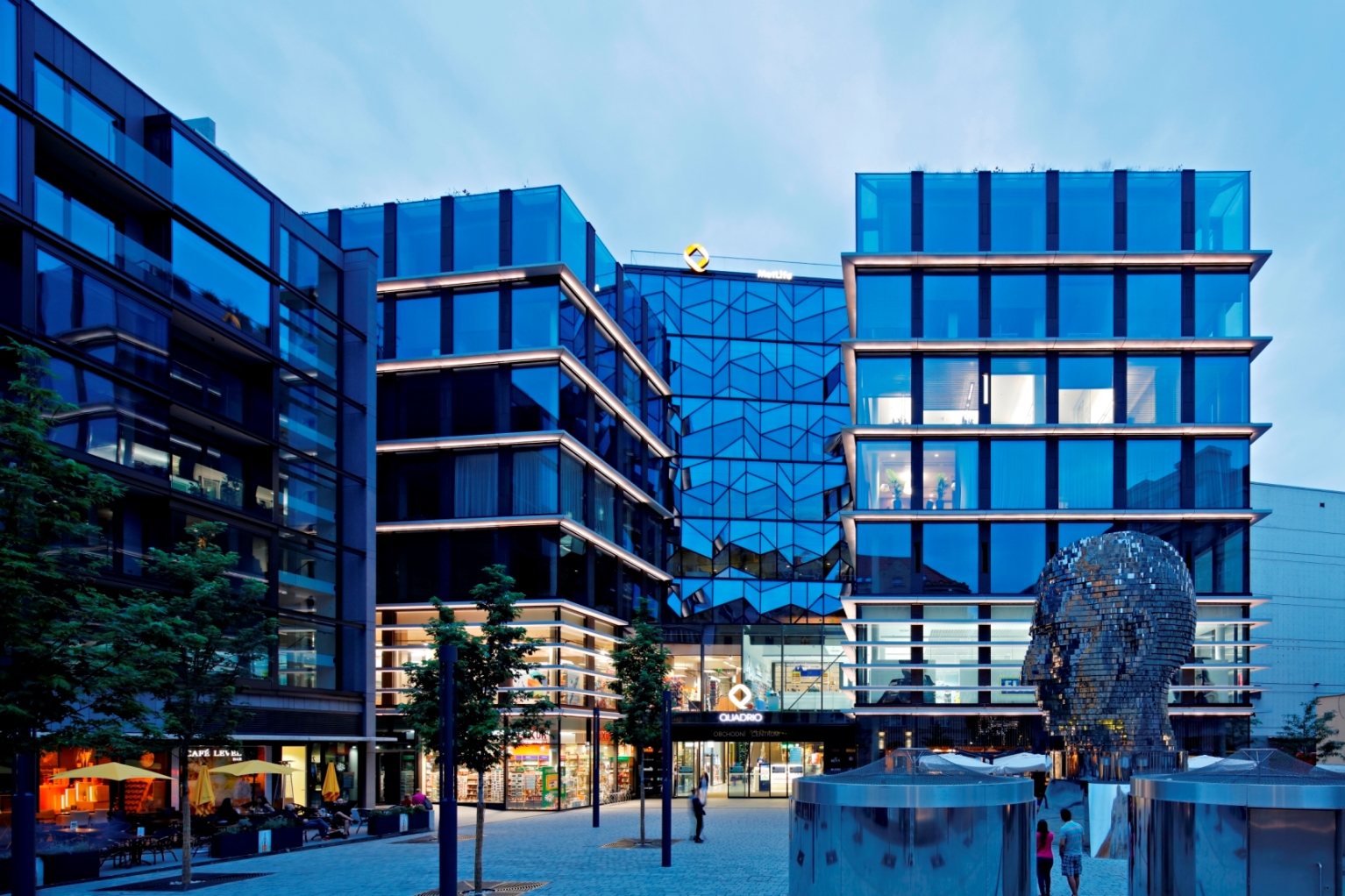 Každého návštěvníka piazzy Quadrio na první pohled zaujme obří pohyblivá hlava Franze Kafky, jejímž autorem je proslulý umělec David Černý. Více než deset a půl metru vysoká plastika s podstavcem o průměru šesti metrů váží třicet devět tun. Mechanická hlava je složená ze čtyřiceti dvou pohyblivých plátů, které otáčí skrytý mechanismus uvnitř sochy. Naprogramovaná choreografie pohybu tváře je dlouhá čtyřicet minut a po uplynutí této doby se opakuje. Nápaditou choreografii Sochy F. Kafky můžete sledovat při šálku dobré kávy v kavárně Café Level nebo z venkovního posezení v restauracích Polpo a Sushi time. Příjemný zážitek můžete nakonec spojit s nákupem v jednom či více obchodech, které nabízí čtyřpatrové nákupní galerie.