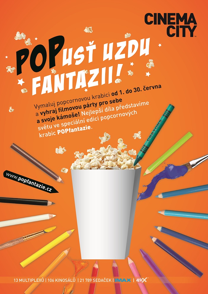 Je tu léto a s ním i čas her a zábavy! Společnost Cinema City si pro všechny malé návštěvníky nachystala vskutku originální letní zábavu. V soutěži s názvem „POPusť uzdu fantazii“ si totiž každý může navrhnout a namalovat svoji vlastní originální krabici na popcorn, kterou zapojí do hlasování. Výherní krabice, potažmo její tvůrce, získá soukromou filmovou párty pro sebe a své kamarády. Zapojit se do soutěže, která trvá do 30. června 2017, můžete na www.popfantazie.cz.