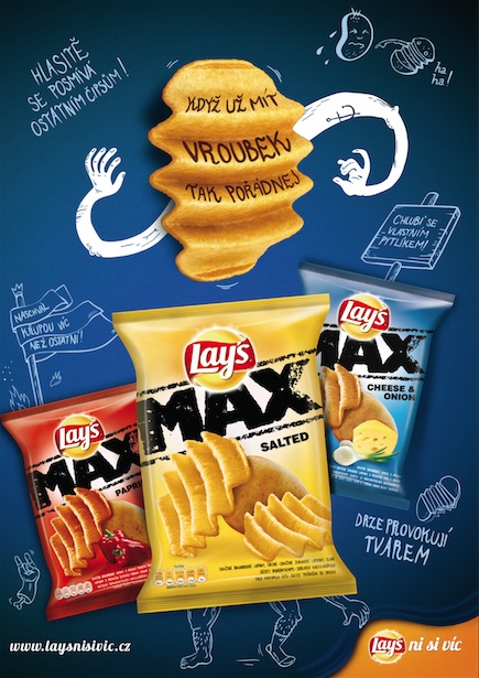 Extra vroubkované Lay’s Max budou na trhu již během března 2014!Lay’s, populární značka chipsů, se chystá uvést 21. března 2014 na tuzemský trh novinku pro skutečné milovníky této pochoutky: chipsy Lay’s Max, které, jak už název napovídá, vynikají nejen skvělou chutí, ale i extrémní velikostí vroubkování. K dostání budou ve třech oblíbených příchutích. Odvažte se a „Lay’sněte si víc“ s Lay’s Max!