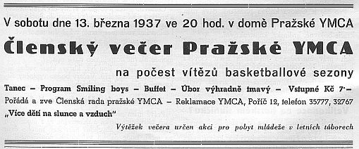 Zároveň zde sídlilo ústředí organizace YMCA v Československu, pražská YMCA a centrum aktivit pro tělesný a duševní rozvoj mládeže. V podkroví byly klubovny pro mládež, na střešní terase pak stálo unikátní hřiště pro míčové hry, v mezaninu se nacházely kanceláře, kavárny, chlapecké klubovny a také tělocvična 30×13 metrů s běžeckou dráhou na visuté galerii. V přízemí byla otevřena kavárna s okny do ulice, bar, knihovna a čítárna.