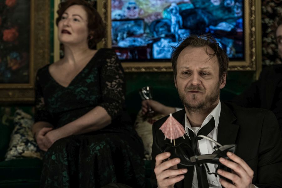 Zlatým hřebem večeře je ovšem příchod herce Národního divadla. Je slavný, prý jeden z největších žijících herců, náležitě nafoukaný, který se všemi bez vyzvání podělí o svá životní moudra, zkušenosti z herecké branže a přidá i špetku pseudofilozofických úvah o přírodě a našich životních posláních. To vše v Bernhardově rozčileném stylu, s jeho bystrozrakým humorem, ve vybroušeném jazyku a v překladu Marka Nekuly, s Bernhardovým pozorovacím talentem a schopností zformulovat naši faleš, předstírání a malosti.