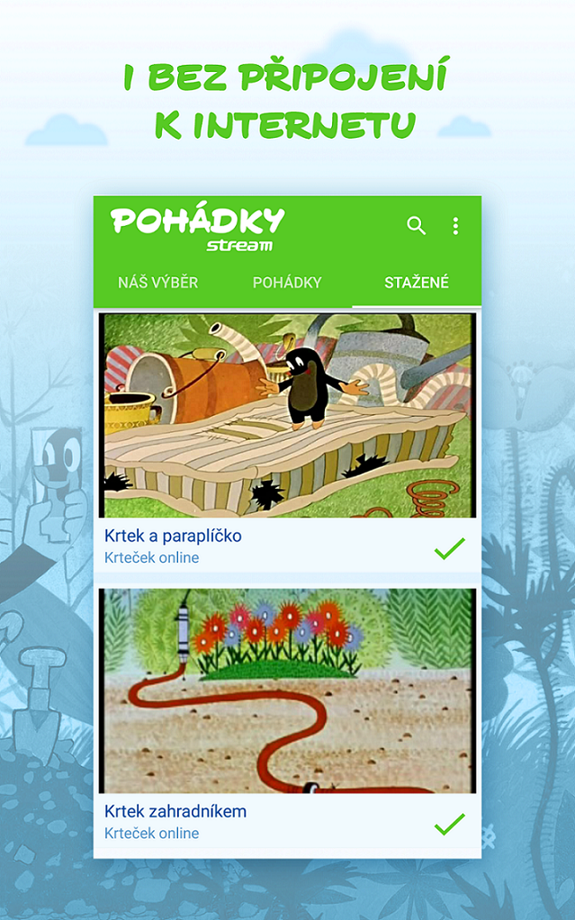 Aplikace Pohádky funguje i na mobilech a tabletech s operačními systémy Android, iOS a Windows, na dvou z nich také offline, takže se nemusíte bát, že nadšení vašeho dítěte vás připraví o veškerá data. Neohrozí vás ani slabý signál nebo pobyt v cizině. Stačí si z Google Play, App Store nebo Windows Store zdarma stáhnout aplikaci Pohádky a vychutnávat si oboustrannou pohodu na vašich cestách. Dětský obsah je navíc neustále obměňován, takže nehrozí, že Pohádky vaše děti brzy omrzí.
