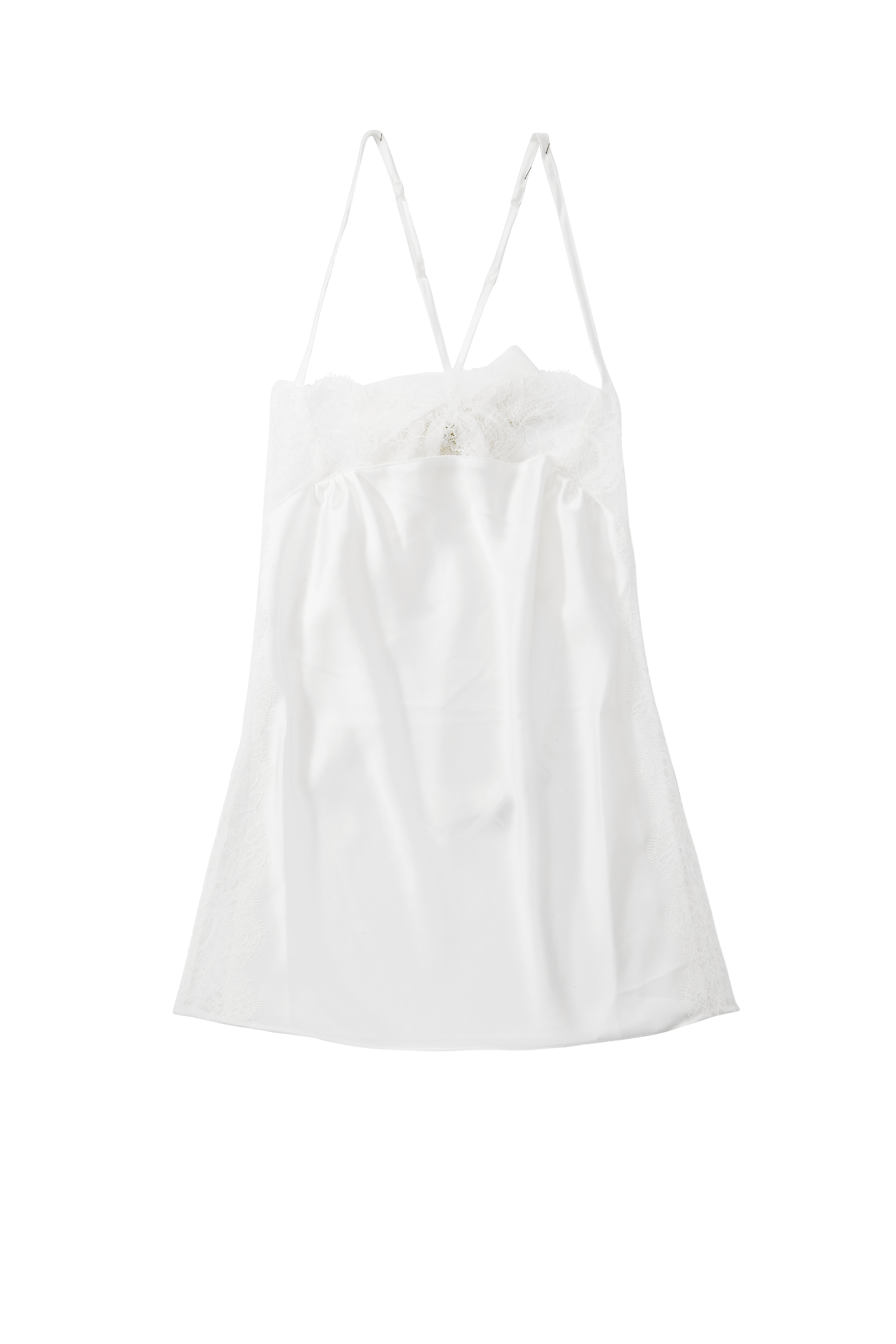 Bílá saténová košilka je něžná jako pro vílu. Pro moderní nevěsty je zde varianta tílka a spodních kalhotek, které vašemu partnerovi připomenou, že jste na radnici řekla „ano“. Doporučená cena za noční košilku: 499 Kč. Doporučená cena za kalhotky: 379 Kč. Doporučená cena za tílko: 429 Kč.