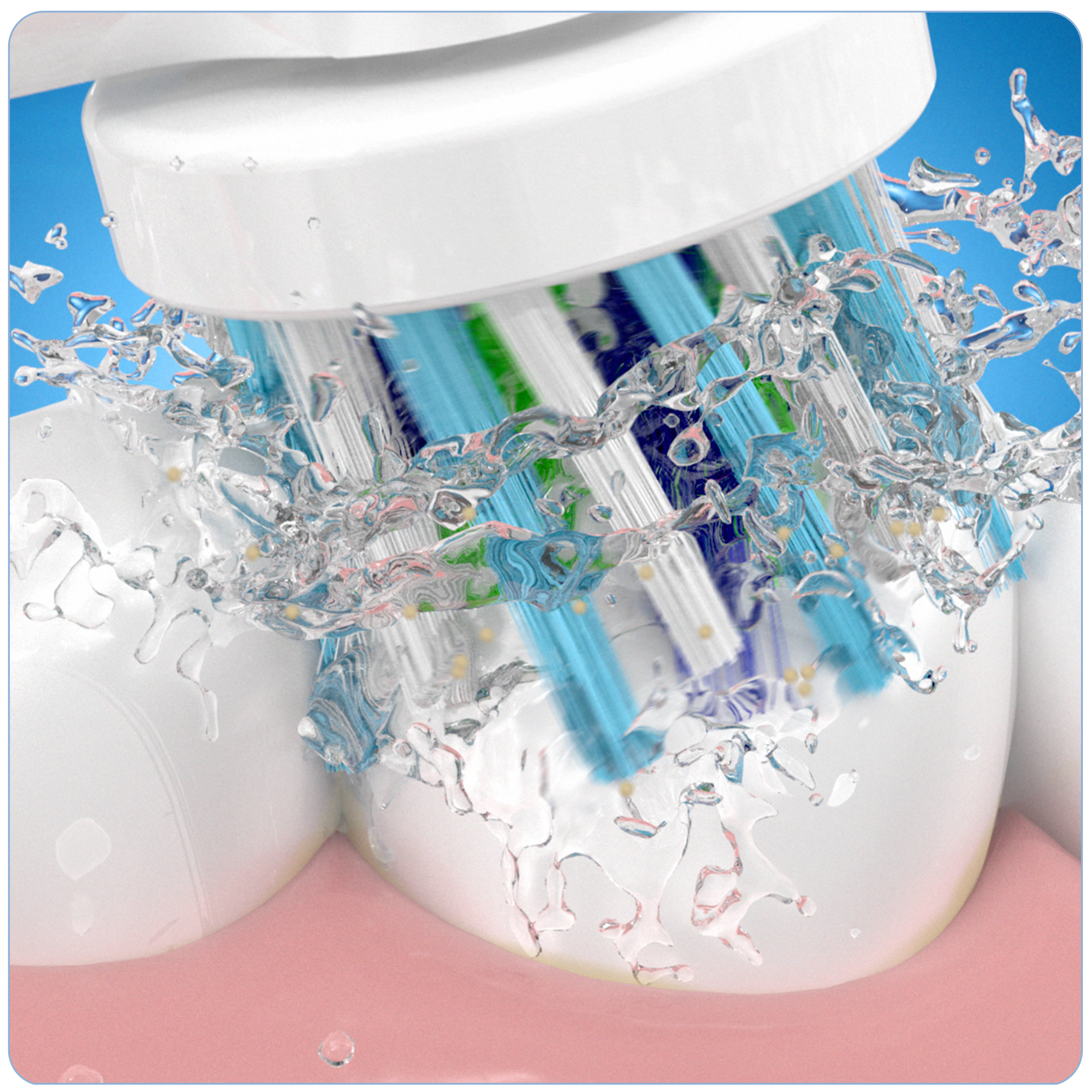 Oscilačně-rotačně-pulzačnítechnologie (jinak zvaná také jako 3D) funguje na principu pulzací, které plak narušují, a oscilačně-rotačních pohybů, které plak důkladně a šetrně odstraní. 3D technologie tak lépenež ta sonickádokáže odstranit nejen plak, ale také nežádoucí povrchovou pigmentaci, což ocení milovníci kávy, čaje či vína. Na pomyslném vrcholu v této kategorii stojí třeba řada Oral-B Genius 10000. Ta je navíc vybavena šesti čisticími režimy– ať už třeba na bělení zubů, na citlivé zuby, masáž dásní či čištění jazyka.