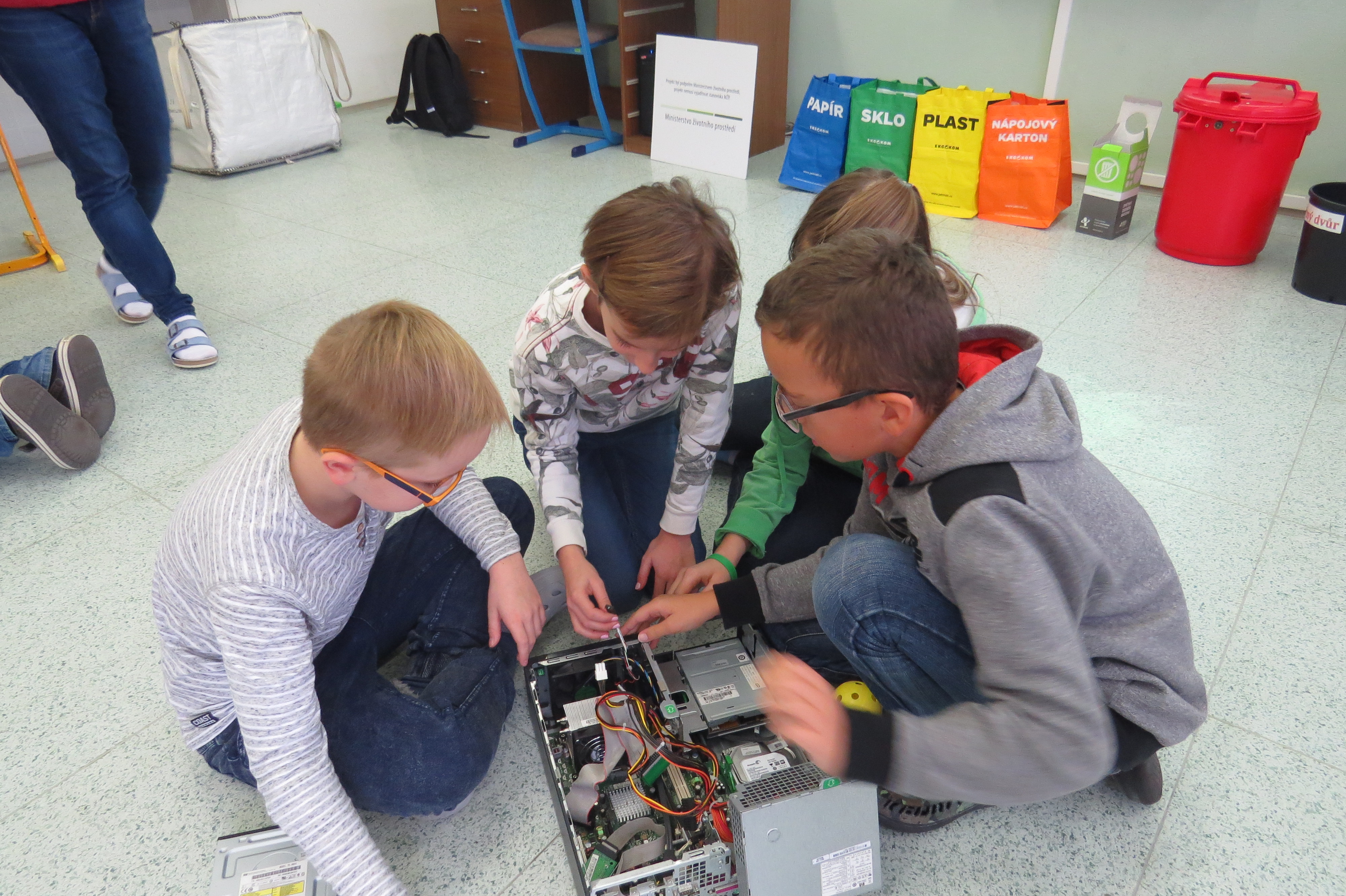 V programu Recyklace hrou žáci rozebírají počítače a své znalosti testují při vědomostním kvízu