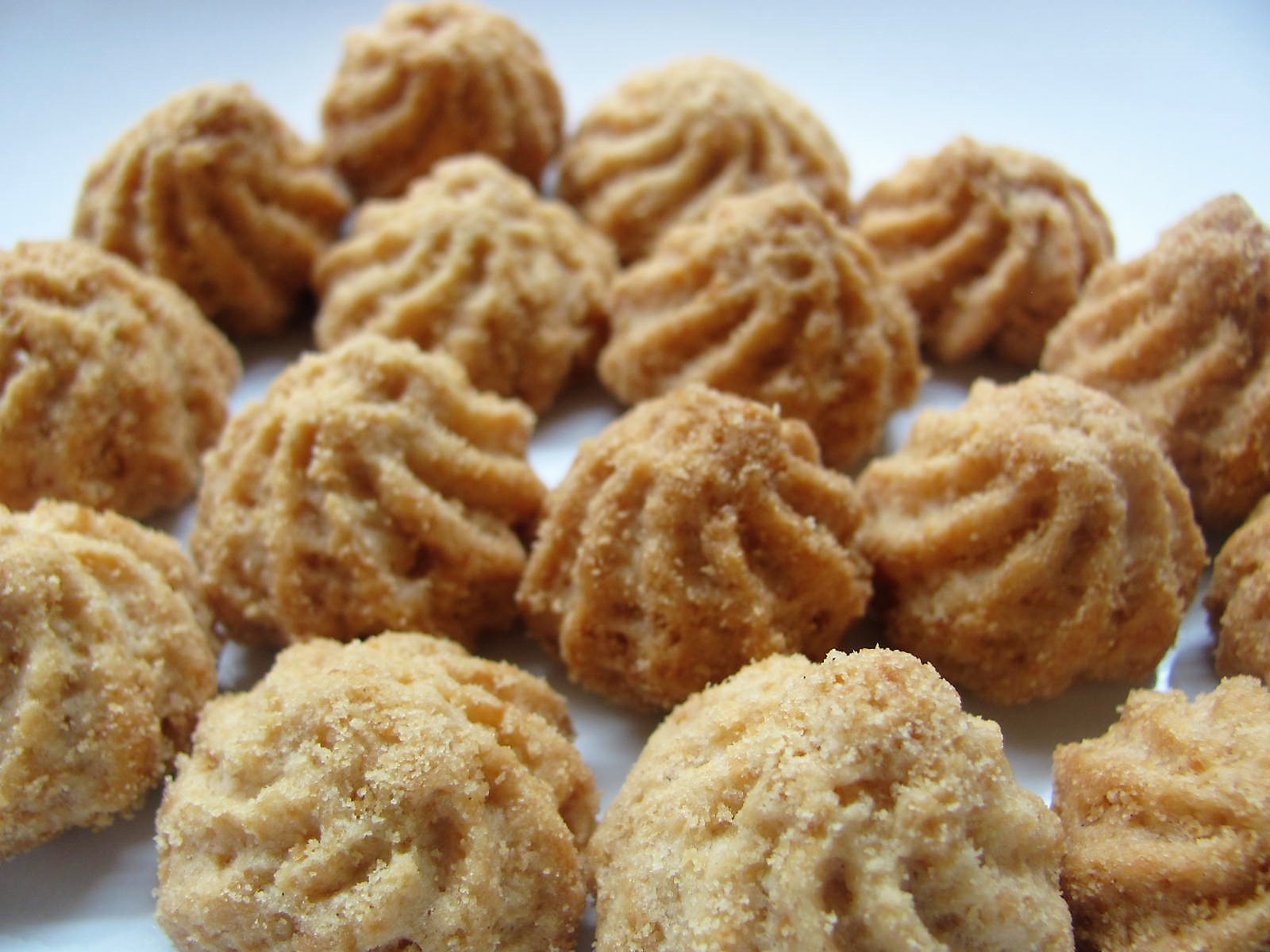 Postup: Nechte rozpustit máslo, přidejte zbývající přísady a dobře zamíchejte, až vznikne hladká směs. Na plech dejte pečicí papír a ze směsi dělejte malé kopečky. Nechte jim mezi sebou trochu místa, sušenky trochu zvětší svůj objem. Pečte v troubě vyhřáté na 180 °C cca 10 minut.