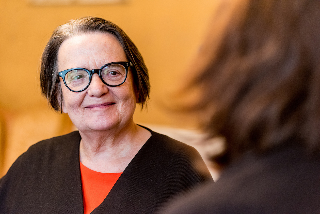 Přijetím čestného titulu doctor honoris causa AMU se Agnieszka Holland po letech symbolicky vrátila na svou Alma Mater, jejíž Filmovou a televizní fakultu absolvovala v roce 1971. V projevu, který při této příležitosti pronesla, zavzpomínala na vloni zesnulé mimořádně inspirativní režiséry Andrzeje Wajdu a především Jana Němce. Němcův film Démanty noci označila za zřejmě nejpoctivější umělecké zpracování holocaustu, motivu, který se stal zásadním tématem jejích filmů. „Zdá se, že historie se točí v kruhu. Že očkování druhou světovou válkou a holocaustem již přestává působit. Že lidstvo se znovu ubírá na temnou stranu – na stranu nenávisti, vyloučení, autoritářství a pohrdání. Brutální síly a měkkého zbabělství. Mohou tomu umělci a filmaři nějak zabránit? Pochybuji. Ale nemáme jiné východisko, než to dál zkoušet. I kdyby to měl být jediný hlas na poušti,“ apelovala v závěru své řeči na slavnostním zasedání Umělecké rady AMU Agnieszka Holland.