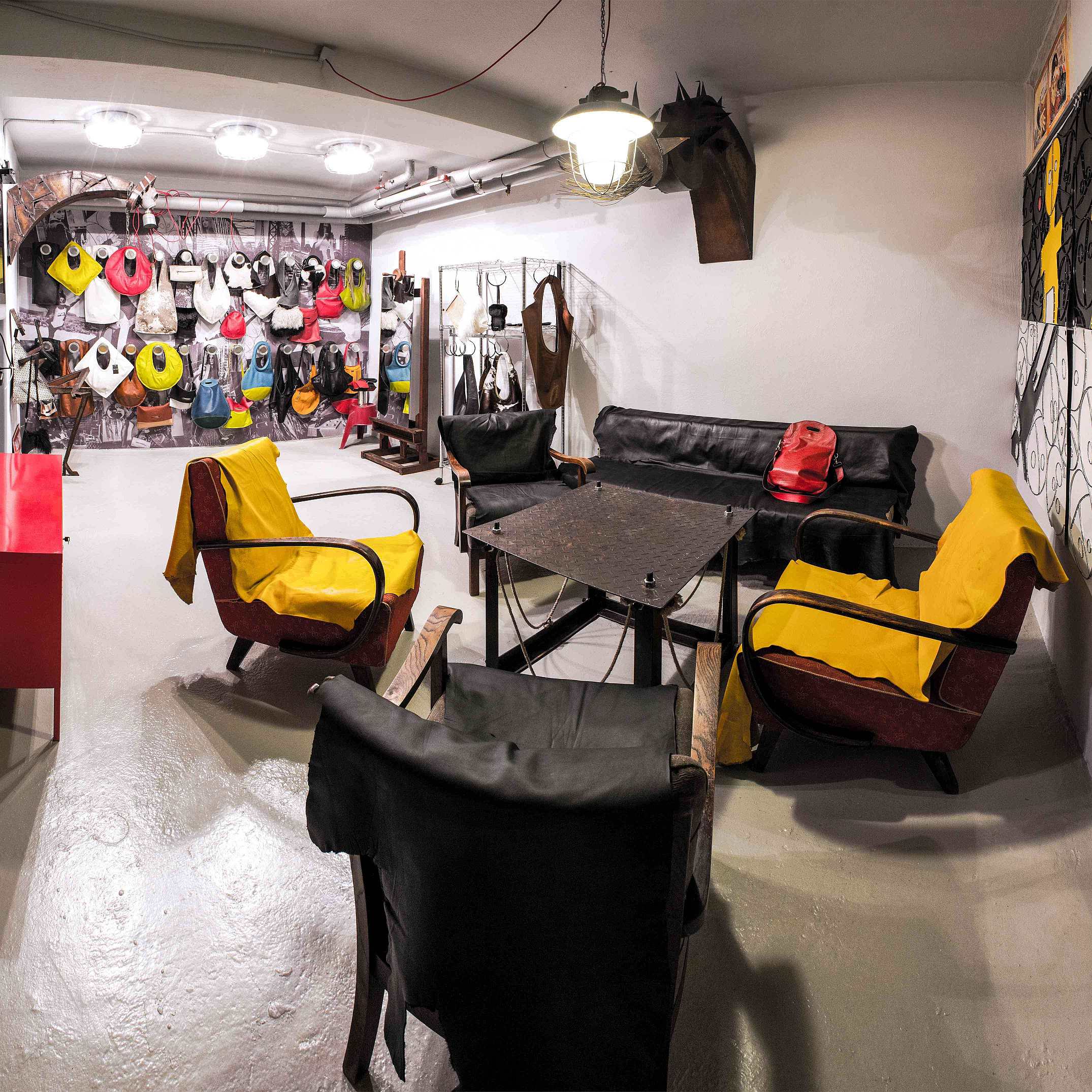 Protiatomový kryt jako ateliér a showroom designových kožených kabelek? Proč ne. Tento prostor je rozhodně neobvyklý a originální – pod zemí, bez oken, za pancéřovými dveřmi, pouze s nouzovým výlezem, používaným v zimě jako lednice.