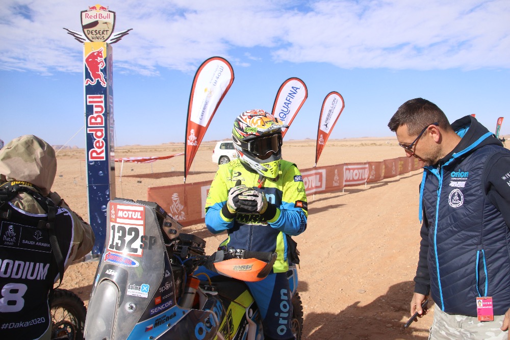 Patří k největším a také k nejpříjemnějším překvapením letošní Rallye Dakar. Ta se jede vůbec poprvé v Saúdské Arábii a nováček Martin Michek se zatím mezi motocyklisty drží na skvělé čtrnácté příčce. Dnes má, stejně jako jeho kolegové, nucené volno kvůli tragické smrti Portugalce Goncalvese v zatím poslední etapě. Přesto měl alespoň malý důvod k radosti.
