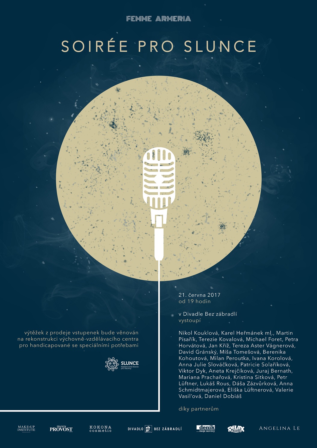 „Každoročně se snažím coby patronka vymyslet nějakou tematickou akci nebo projekt, kterými bych Nadaci Slunce finančně podpořila, a letos to připadlo na Soirée, které mi leží v hlavě už asi dva roky. Oslovila jsem kolegy a známé z branže s nápadem se zapojit, tak uvidíme, co dáme společně dohromady. Výtěžek z prodeje vstupenek bude věnován na rekonstrukci výchovně-vzdělávacího centra pro studenty se speciálními potřebami v Unhošti,“ vysvětluje Nikol Kouklová, která stojí za organizací celého eventu.