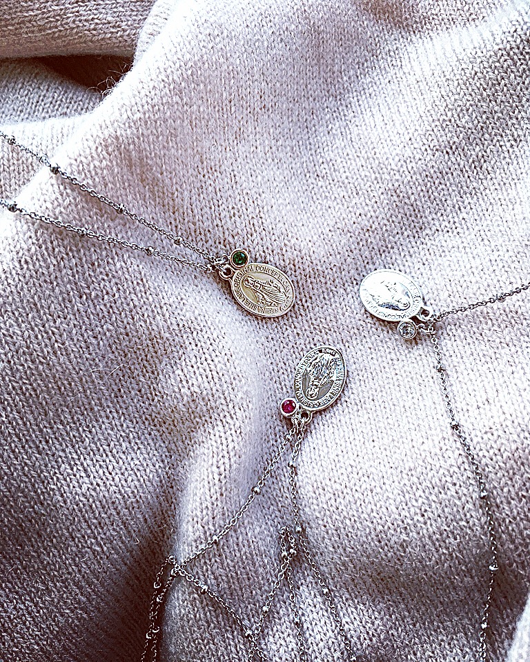 Základním a také ikonickým produktem kolekce šperků je náhrdelník s medailonkem Panenky Marie a křížkem, ve zlaté i stříbrné barvě, dále v kolekci najdete náramky a náhrdelníky s křížky, šperky s perleťovými čtyřlístky, nebo strom života jako symbol ženství a rodiny, opět posázen zirkony pozlacen 16kt zlatem. Každý symbol či vzor použitý na špercích značky Lucie Marim je spojením energie, lásky a měl by posilovat naše vnitřní já. Nemluvíme tu ani o špercích, ale spíše o talismanech, které nás provázejí každodenním životem.V příštím roce představíme první kolekci šatů z hedvábí, opěd plně navazujících na naši filosofii.