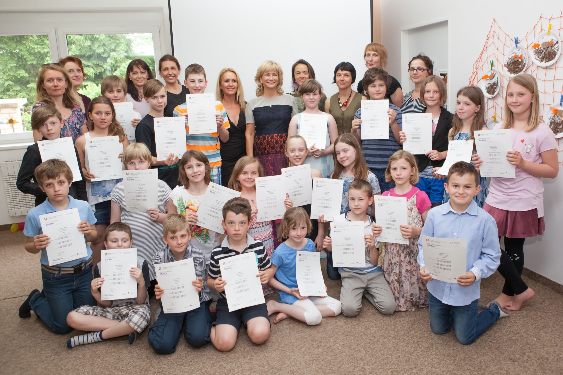 Dozvídáme se, že nejmladší studentka do dětského kurzu Baby´s Best Start začala chodit ve věku 4 měsíců a že vedle unikátních výukových metod je výhodou i fakt, že se studenti mohou přímo ve Výukovém centru připravit a následně podrobit mezinárodním testům. Tak získají uznávané certifikáty Cambridge. Ty dětské mají příponu YLE, což znamená Young Learners a jsou ve 3 stupních. Poté následuje další stupnice úrovní. Maturitní úrovně PET dosahují děti již ve věku 13 let!