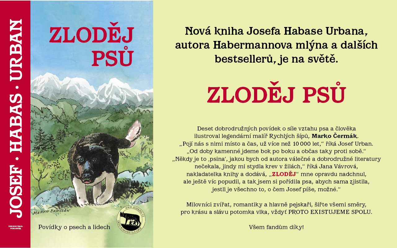 Josef Habas Urban je český spisovatel, scénárista, přírodovědec, bývalý reprezentant ve sjezdu divoké řeky, a především milovník zvířat. Jeho bestsellery Habermanův mlýn,7 dní hříchu, román Tenkrát v ráji a další se dočkaly nejen řady zahraničních ocenění ale rovněž filmového zpracování. Kniha, kterou vydalo nakladatelství s příznačným názvem The Dog Trail Jany Vávrové, je doplněna poutavými obrázky Marko Čermáka, ilustrátora Rychlých šípů.