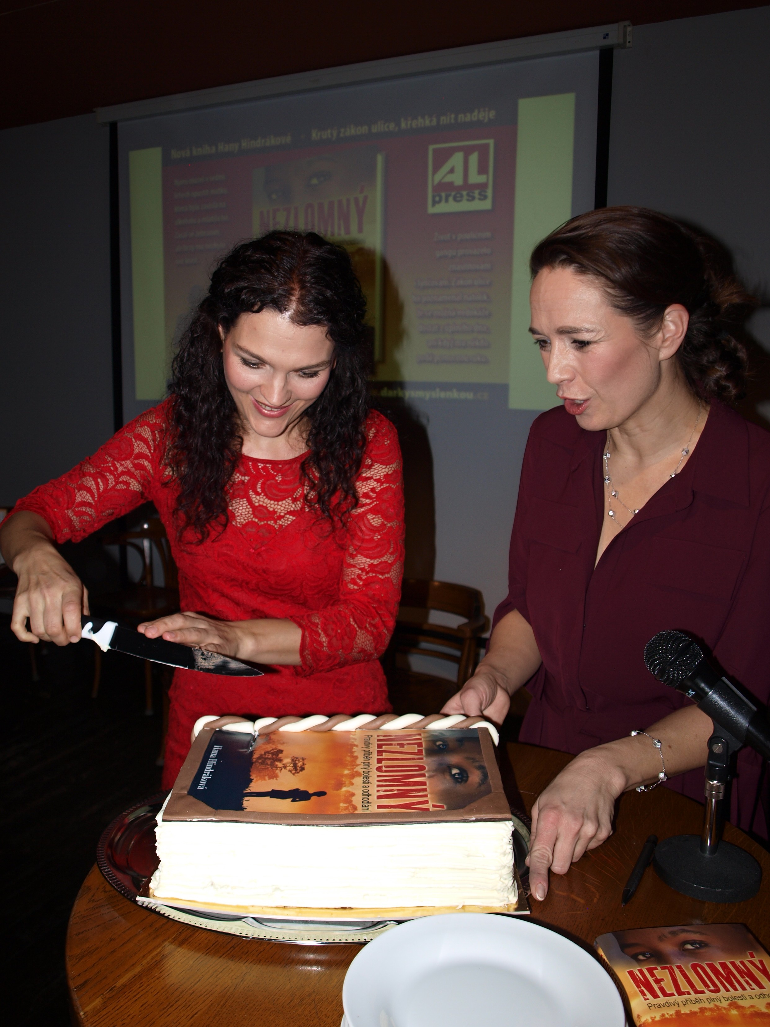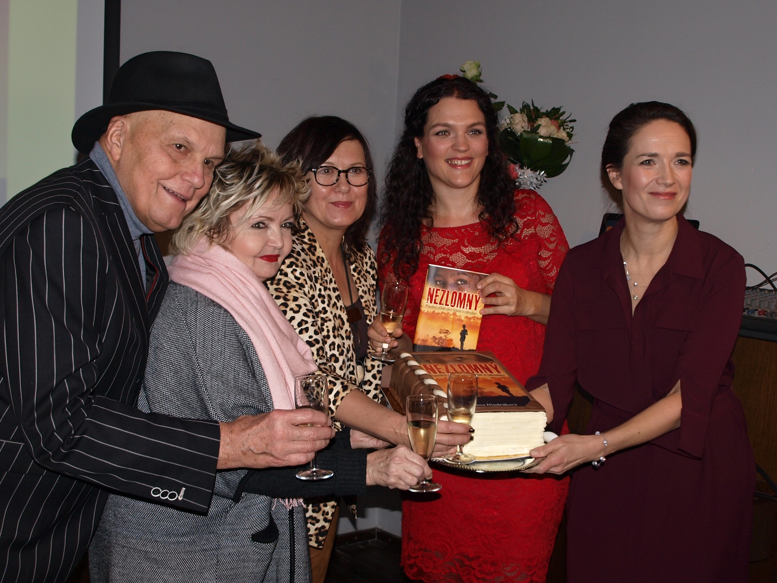 Knihu pokřtili známí herci Jan Přeučil a Eva Hrušková a známá dietoložka MUDr. Kateřina Cajthamlová. A jako překvapení se hosté dočkali dortu ve tvaru knihy s obálkou Nezlomného.
