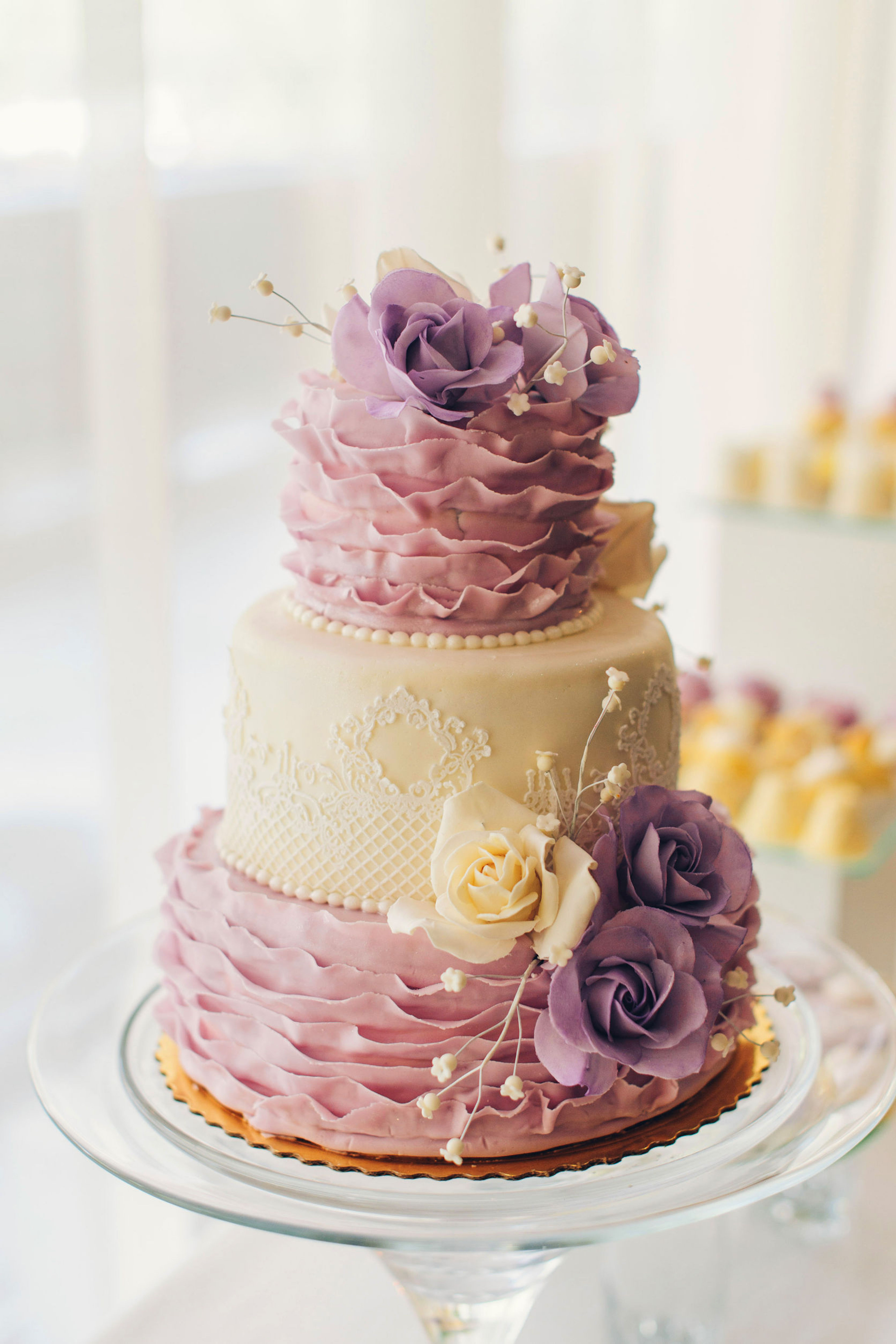 - 45305828 – ombre ruffle cake on a dessert table