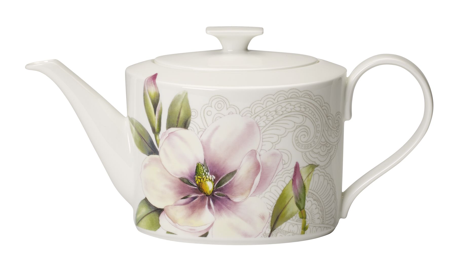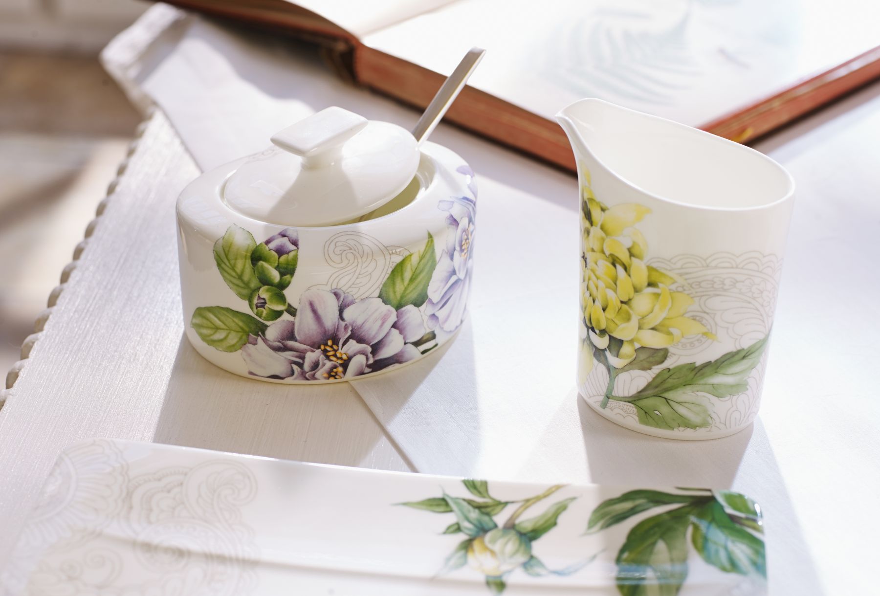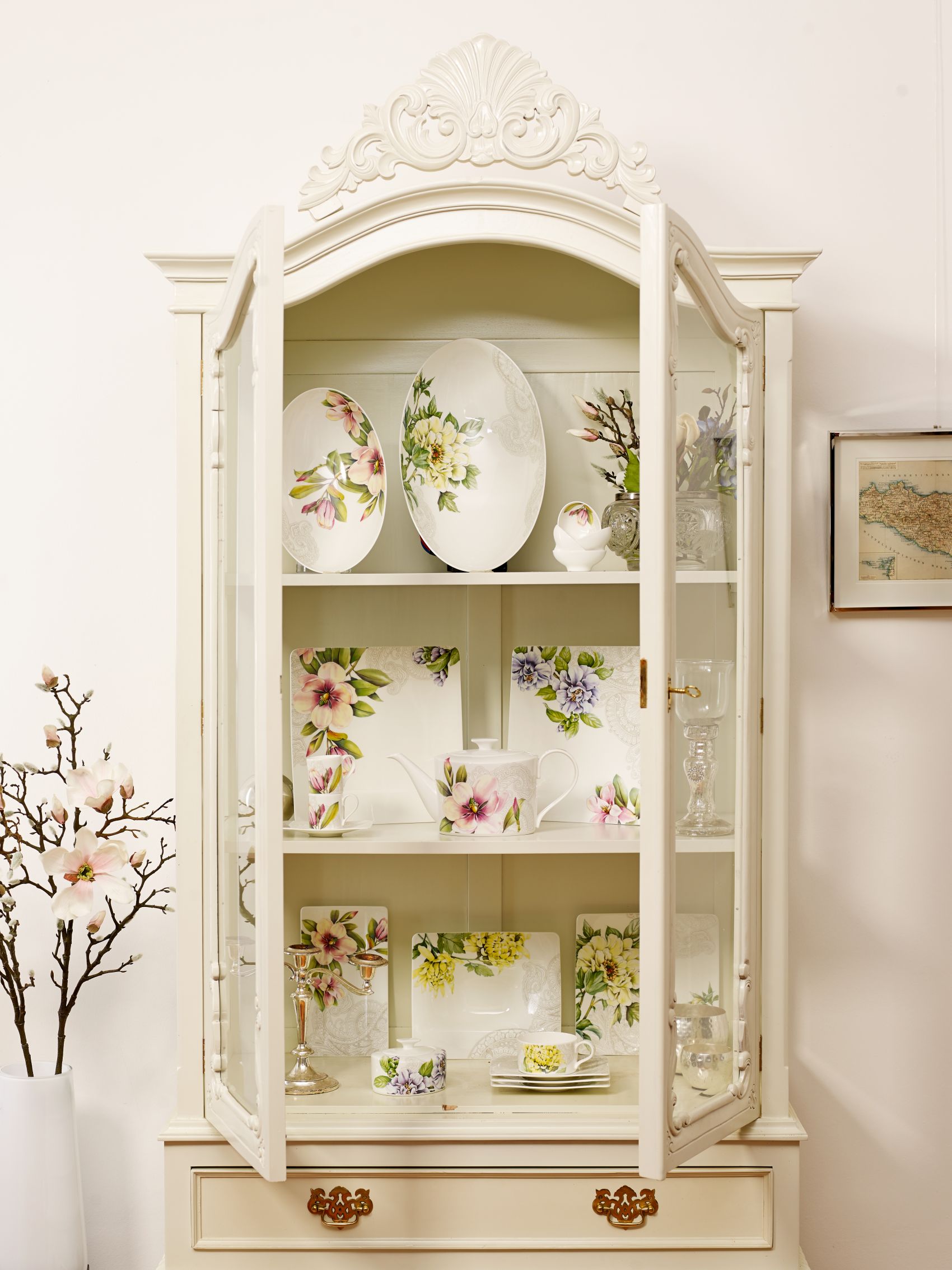 Na nádobí najdete okázalé pivoňky, které symbolizují bohatství a noblesu, jemné kamélie, ty jsou spojené s velkorysostí, barevné chryzantémy reprezentují odvahu, vytrvalost a dlouhou životnost, zatímco rozkvetlé magnólie jsou symbolem pro krásné ženy.