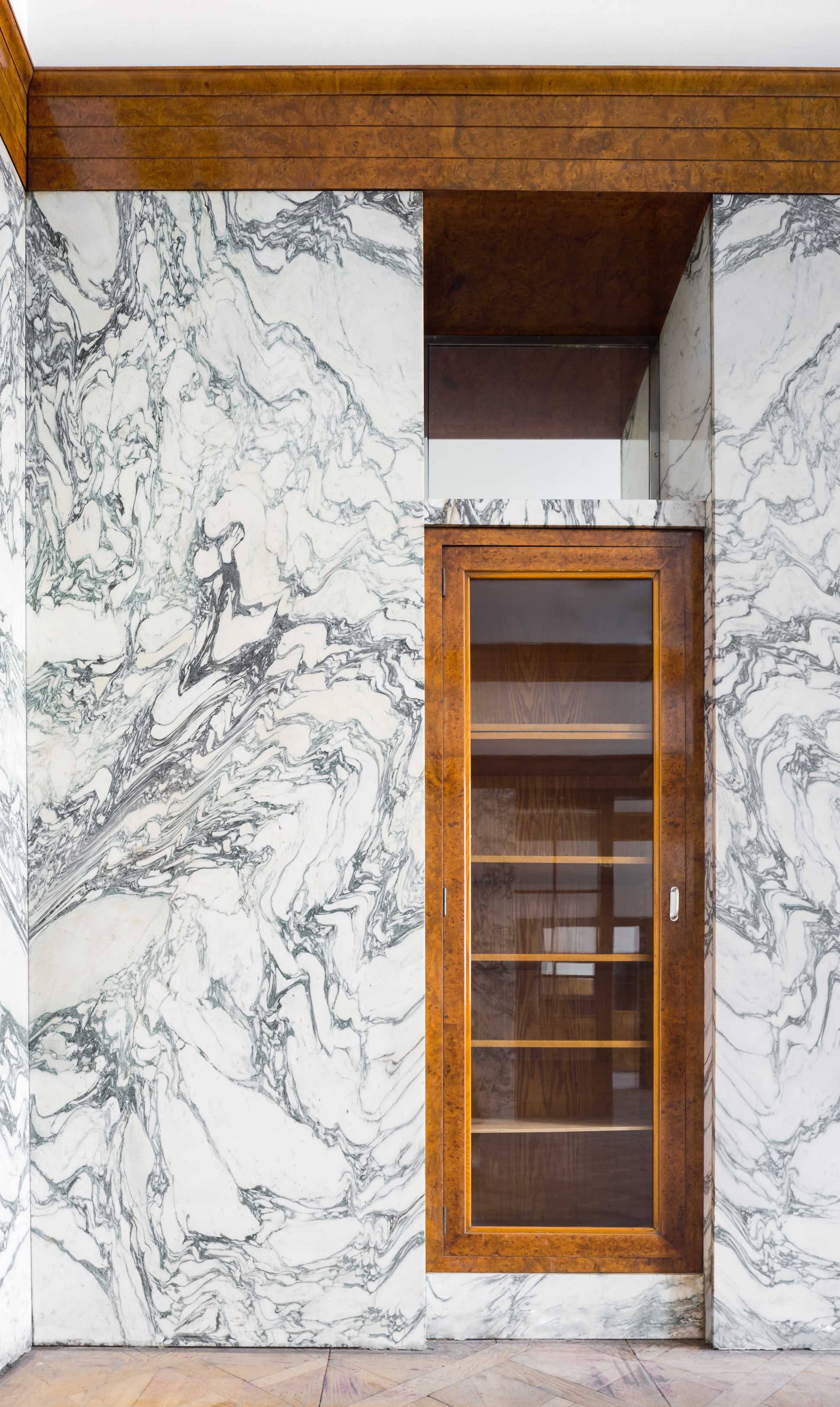 Do dnešních dní se zachovalo jádro interiéru s jídelnou, salonem a hudebním salonkem. Právě hudební salonek je prokazatelně Loosovou prací, navrhl jej mezi lety 1931–1932 pro ženu Hugo Semlera. Další dvě místnosti byly vytvořeny v loosovském stylu. Místnost přísně udržuje princip symetrie, stěny jsou obloženy mramorem typu „fantastico“ se zvláštním černobílým žilkováním, připomínajícím nejrůznější fantaskně vyhlížející bytosti. V průčelí salonku nechybí ani krb a zrcadla v nikách mramorové stěny. Od sousedního obývacího pokoje je hudební salonek oddělen prosklenými posuvnými dveřmi, umožňujícími rozšířit prostor.