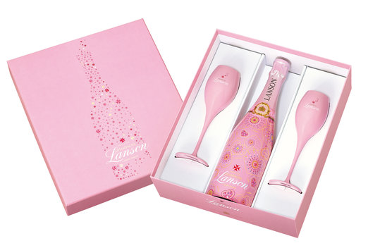 Dárková sada s růžovým šampaňským Lanson Rosé Label Brut, které je připraveno z odrůd Chardonnay, Pinot Noir a Pinot Meunier, má lososovou barvu s růžovými okraji. Vůně vína je delikátní a svěží, podpořena tóny červeného ovoce, zejména granátových jablek a růží. Chuť je jemná a ušlechtilá s dlouhým závěrem.