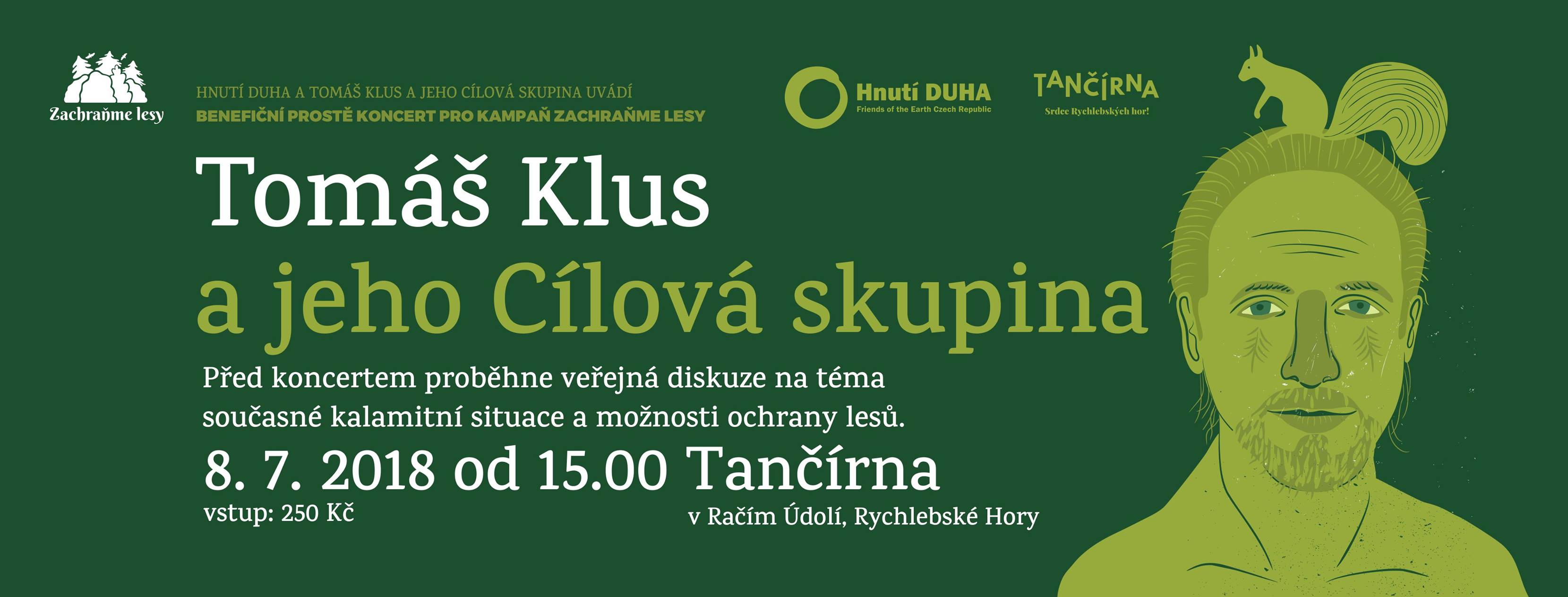 Zpěvák Tomáš Klus se aktivně zapojil dokampaně za záchranu lesů. V Bezlesé pohádce, kterou společně s Hnutím DUHA natočil, vybízí všechny, kterým není osud našich lesů lhostejný, aby se připojili k výzvě Zachraňme lesy. V neděli 8. července Tomáš přijede spolu se svou Cílovou skupinou koncertovat na podporu změny pravidel lesního hospodaření v České republice do Tančírny v Račím údolí. Koncertu bude předcházet veřejná debata o chřadnutí lesů a možnostech, jak mu do budoucna zabránit.