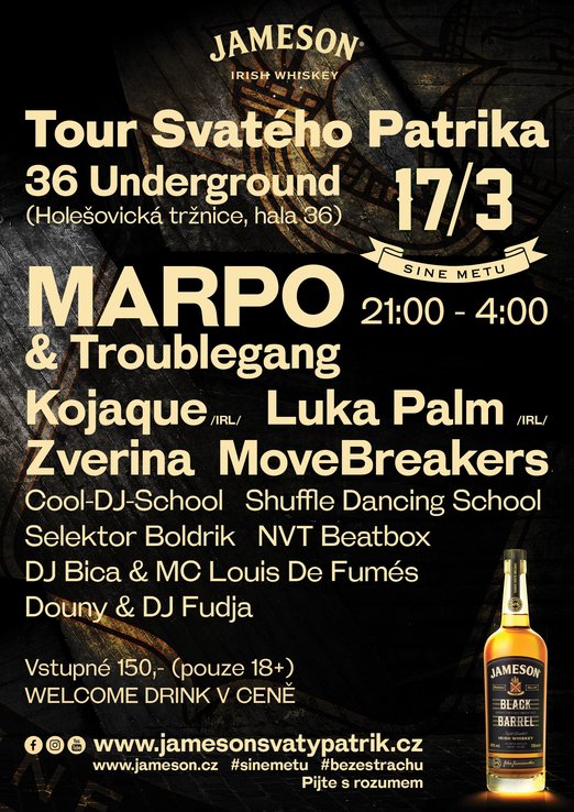 Druhým místem s našlapaným programem a velkou kapacitou bude neotřelý holešovický prostor 36 Underground. Zde si přijdou na své fanoušci urban style a hip-hopu. Hlavní stagi bude vévodit Marpo a Trouble Gang, který 5. 3. vydal očekávané album Dead Man Walking. Tuto last minute posilu v programu doplní nejaktuálnější zástupce irského hip-hopu Kojaque, který má také čerstvé album. Od 23. února je na světě jeho novinka Deli Daydreams a Praha je jedinou zastávkou jejich březnové tour mimo rodné Irsko, kde jejich hvězda rychle stoupá.
