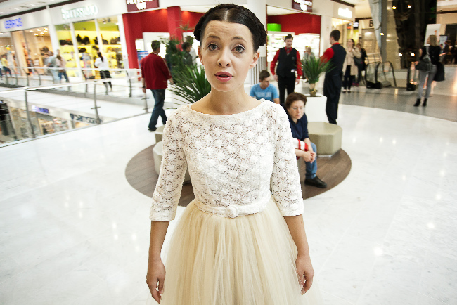 V obchodním centru u Anděla se tak procházeli andělé Kristýna Frejová, Marek Pospíchal a Patrik Děrgel, skrýval se zde Tomáš Kobr jako Netvor z Frankeinsteina, v parfumerii se zase poplašeně líčila svůdná Marilyn Monroe ze hry Parchant Marilyn v podání Zuzany Onufrákové. To Robert Jašków z komedie Řemeslníci se coby fušerský opravář pustil do opravy požárního hydrantu. Filip Čapka společně s Davidem Punčochářem z inscenace Vladimirova děvka přiblížili návštěvníkům syrovou atmosféru hry a lákali návštěvníky do fiktivní divadelní hospody. Mramorovými chodbami se ve svatebních šatech protančila také Martina Krátká jako Nevěsta z inscenace Crash u Potoka, kolemjdoucí udivoval i obezřetně se pohybující Tomáš Pavelka v indiánském kostýmu a na eskalátorech se tiše vozila bledá Paní Smrt v podání Petry Hřebíčkové. Výstava třiadvaceti fotografií je umístěna v prvním patře až do 26. října, autory jsou Patrik Borecký, Michal Hančovský, Alena Hrbková, Alžběta Jungrová, Kateřina Zahradníčková a Robert Vlk, vstup je zdarma.