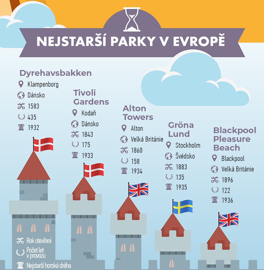 Tato kategorie je tím pravým pro milovníky historie. „Starý kontinent“ totiž nabízí množství starých lunaparků. Tipnete si však, kolik let má ten skutečně nejstarší? Dyrehavsbakken v Dánsku má již neuvěřitelných 435 let! Tento zábavní park vznikl ještě za života Williama Shakespeara a dobou své existence tak trumfne většinu současných evropských států.