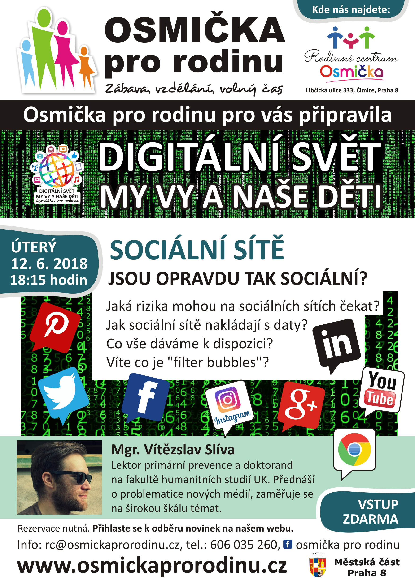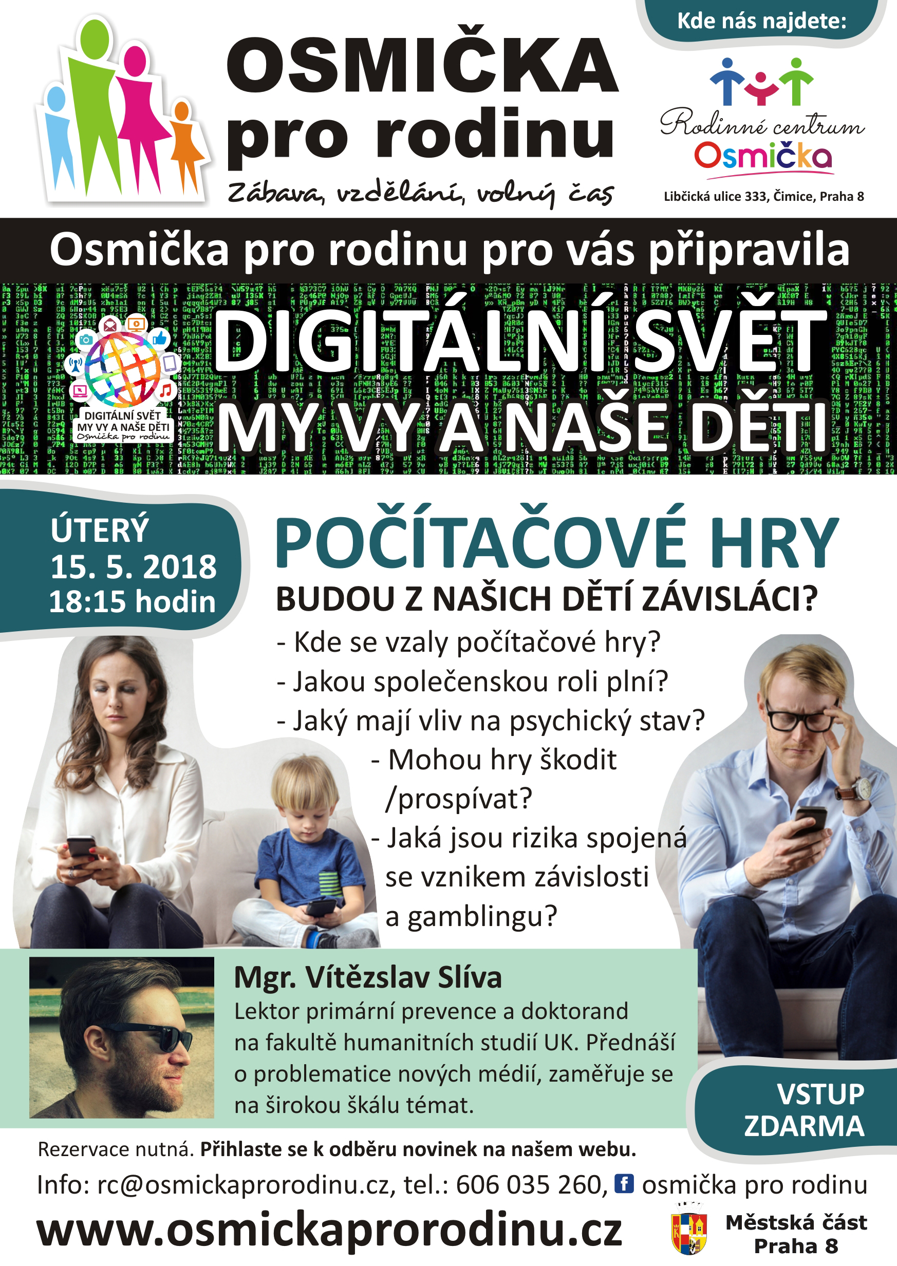 Osmička pro rodinu tedy na květen a červen naplánovala několik akcí v rámci projektu DIGITÁLNÍ SVĚT, MY VY A NAŠE DĚTI. Projekt je určen všem cílovým skupinám, tedy i dětem. „Velice pozitivně vnímám fakt, že se o bezpečí v kyberprostoru zajímají rodiče i samotné děti. Je to důkaz toho, že o rizicích přemýšlejí. Proto podporujeme akce cílené na rozlišné skupiny tak, aby osvěta i diskuze byly co nejpřínosnější,“ popisuje místostarosta Prahy 8 Radomír Nepil bez jehož podpory by projekt nevznikl.